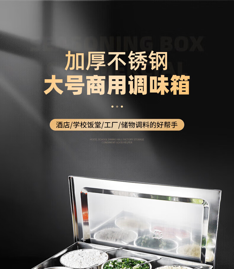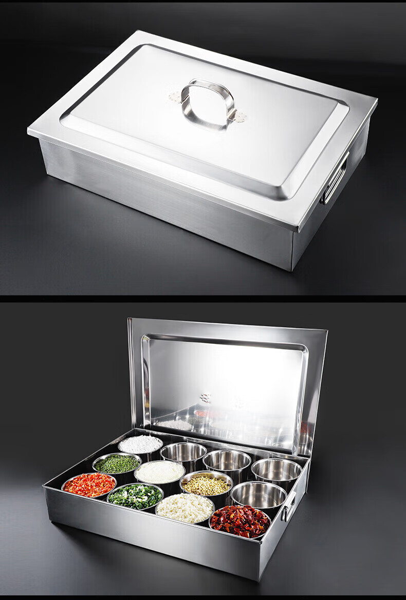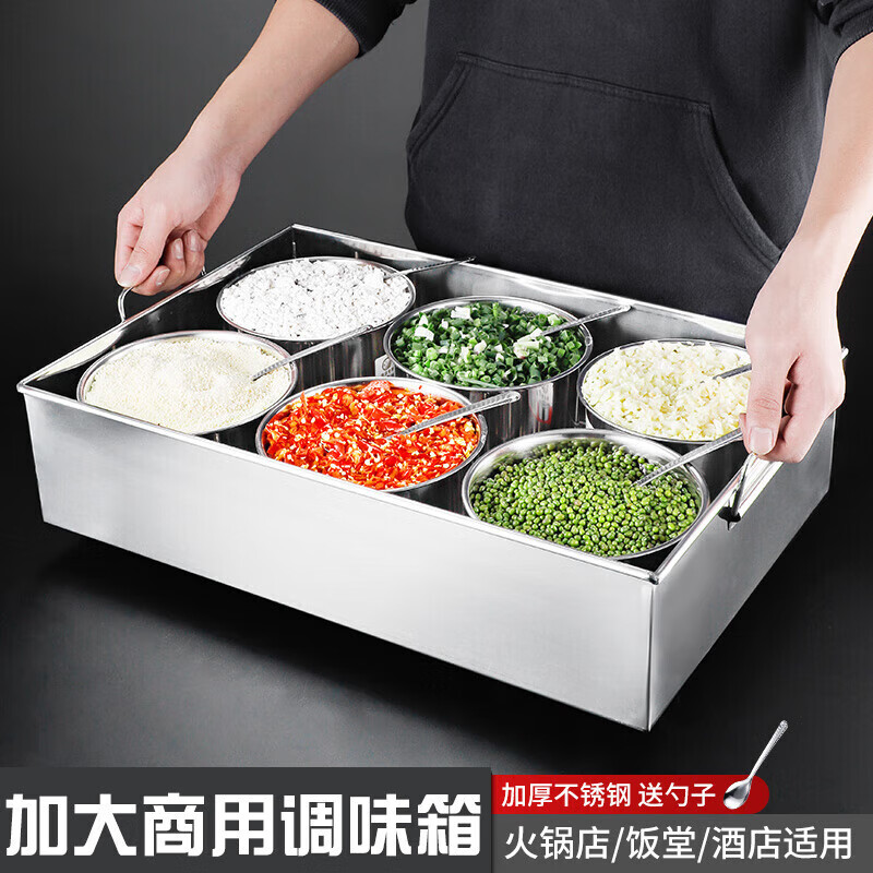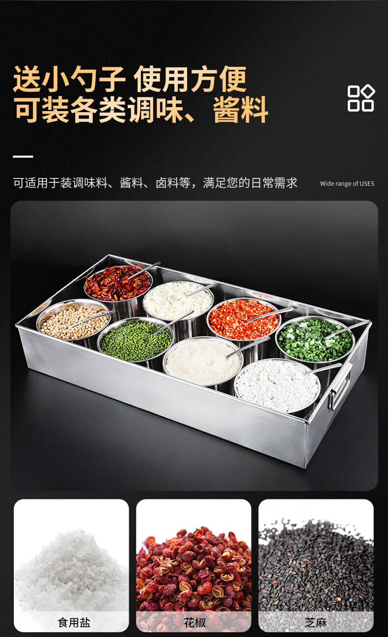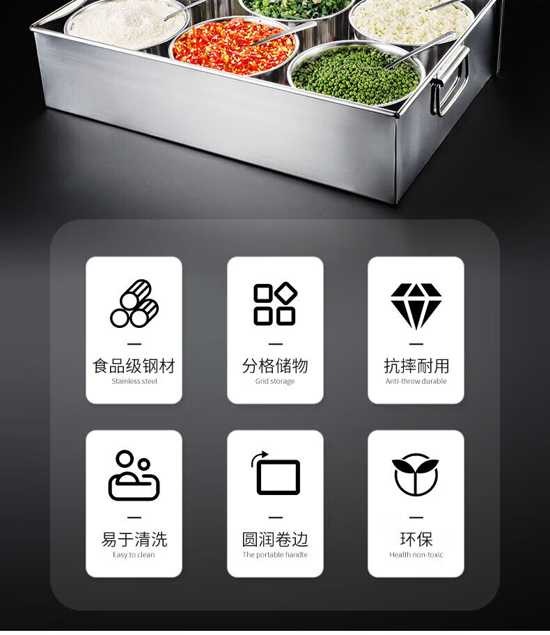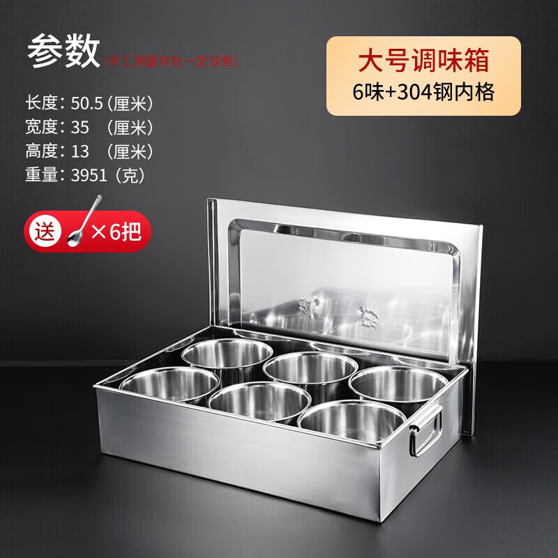 • 商品名称:丹诗致远 不锈钢调料盒大号佐料盒配菜盒配料盒可定制 6格304内格无盖 6格304内格无盖/个