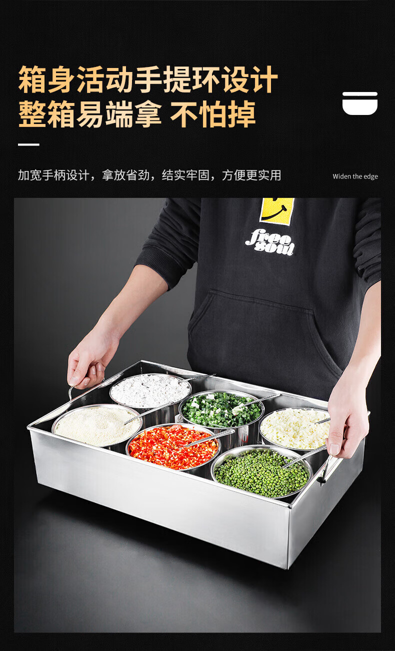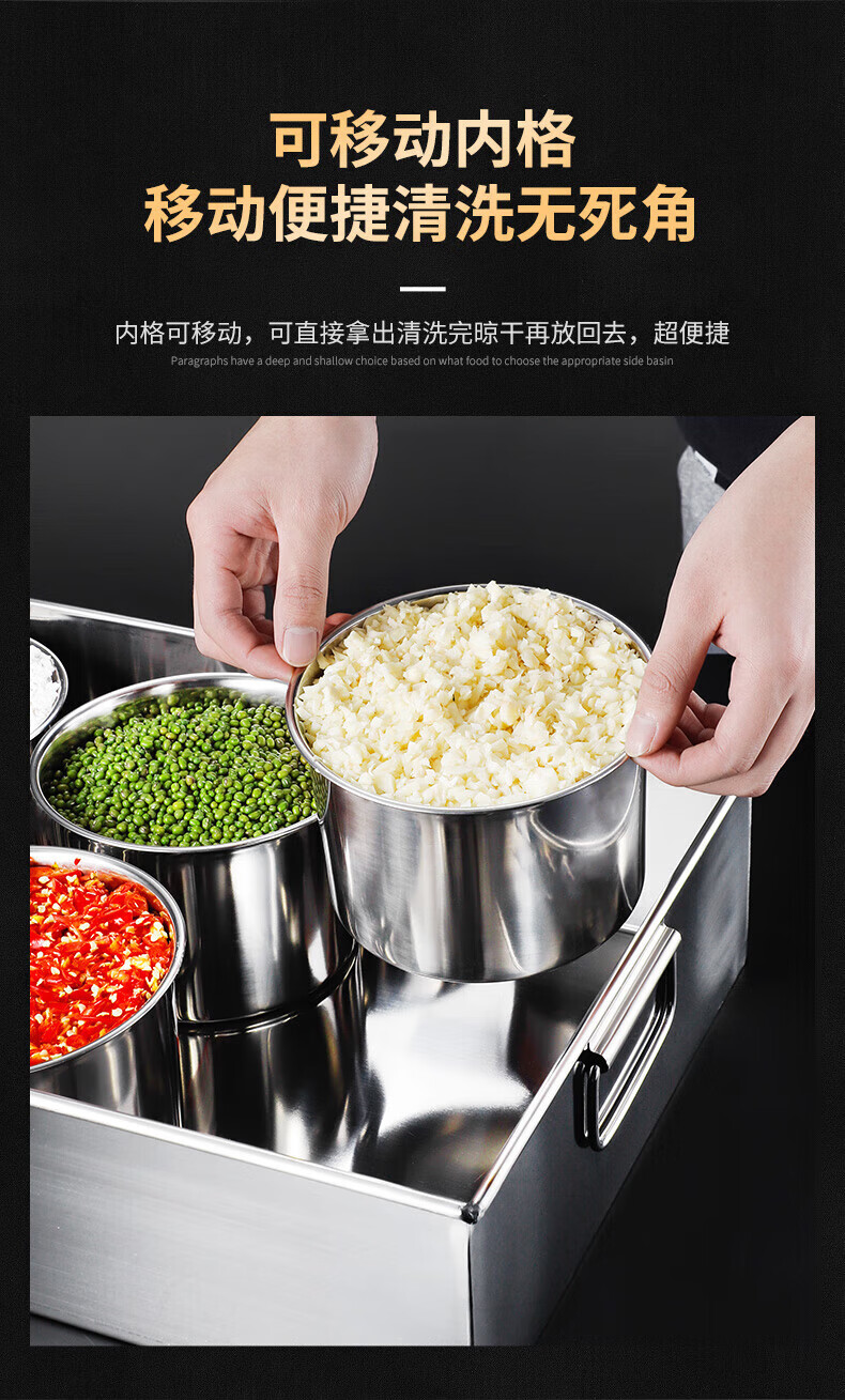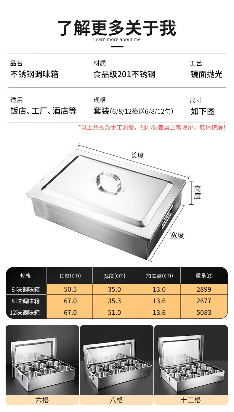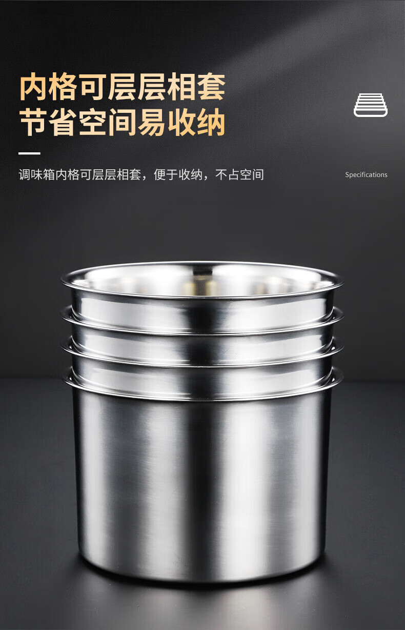 • 商品名称:丹诗致远 不锈钢调料盒大号佐料盒配菜盒配料盒可定制 6格304内格无盖 6格304内格无盖/个
