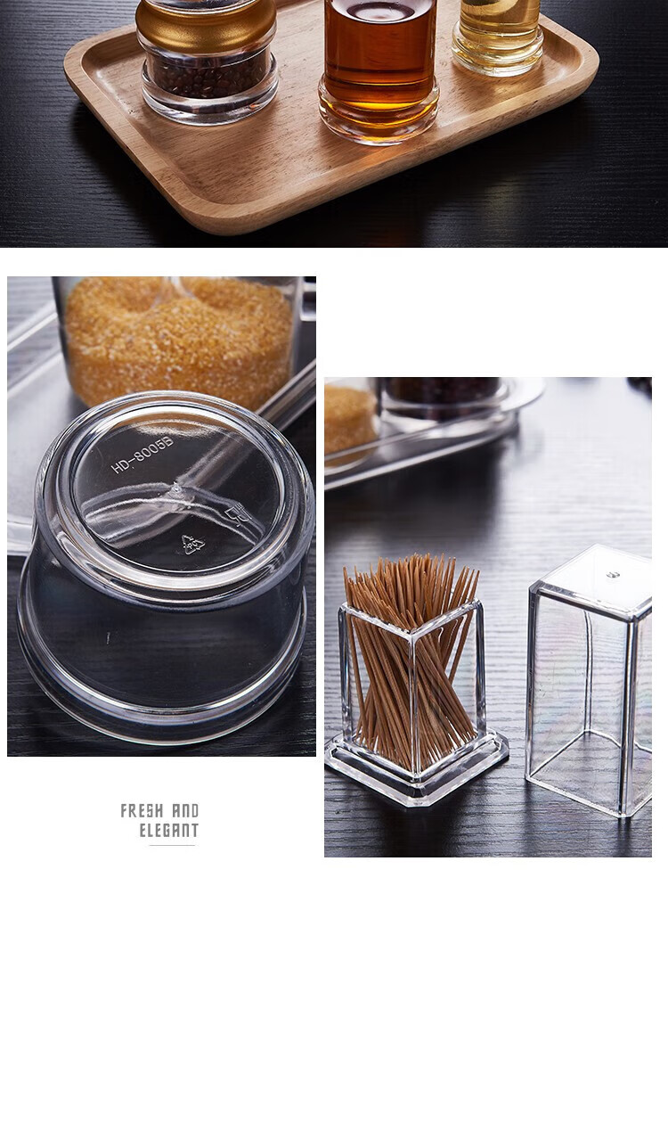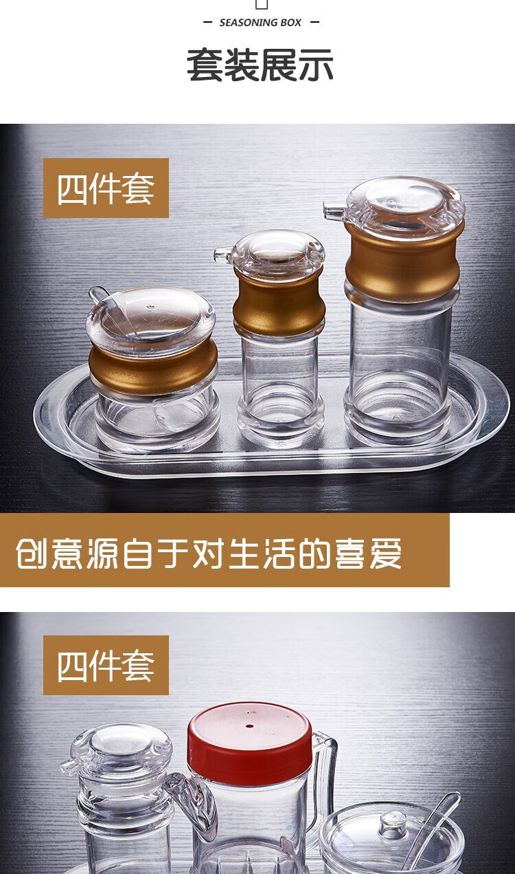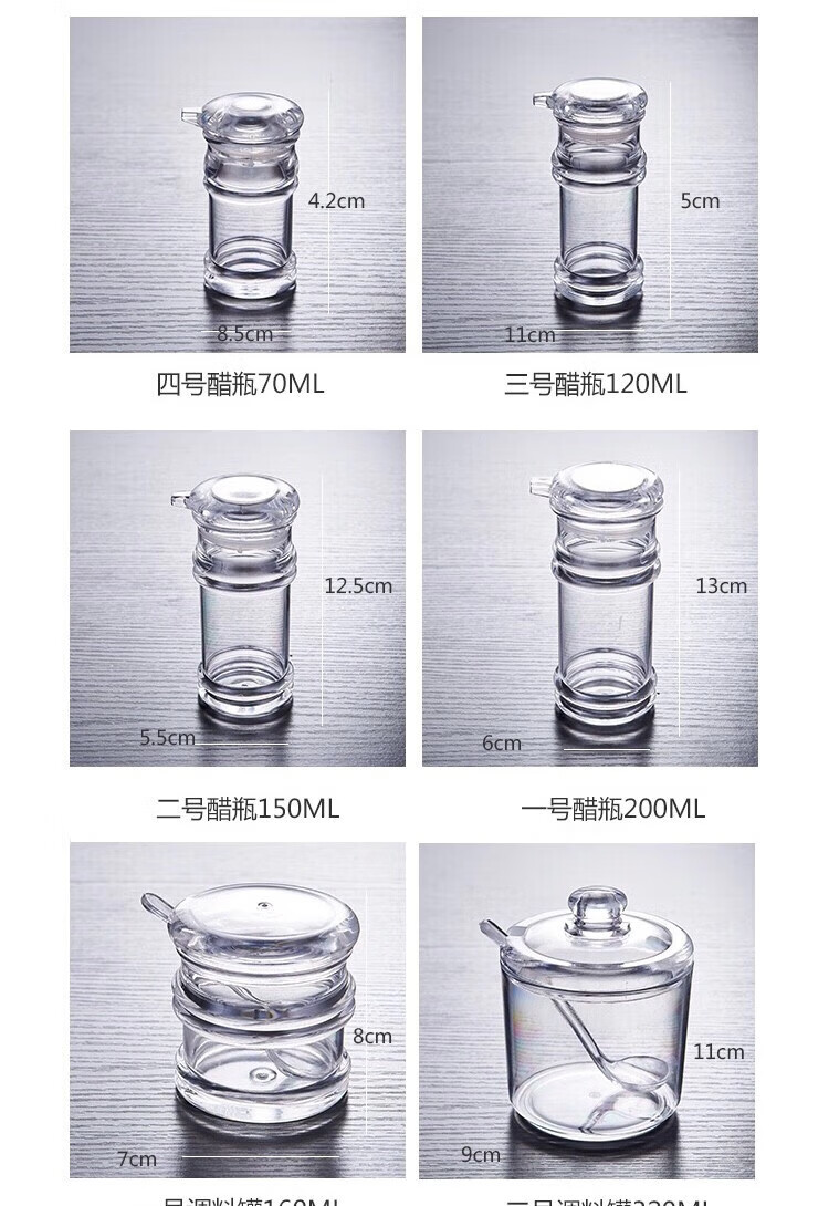 • 商品名称:丹诗致远 亚克力调料瓶塑料调味罐酱油瓶辣椒罐可定制 5件套【商用款】 5件套【商用款】/个