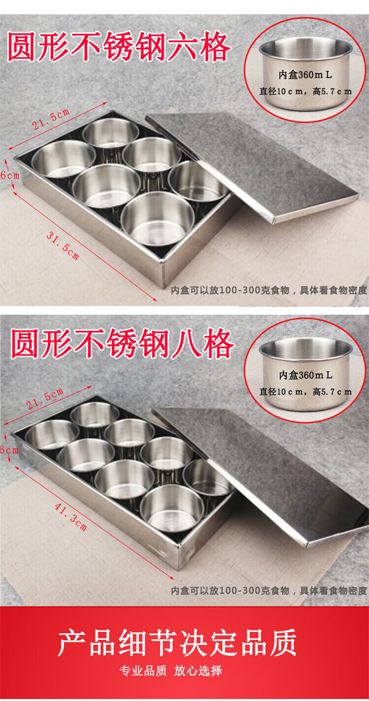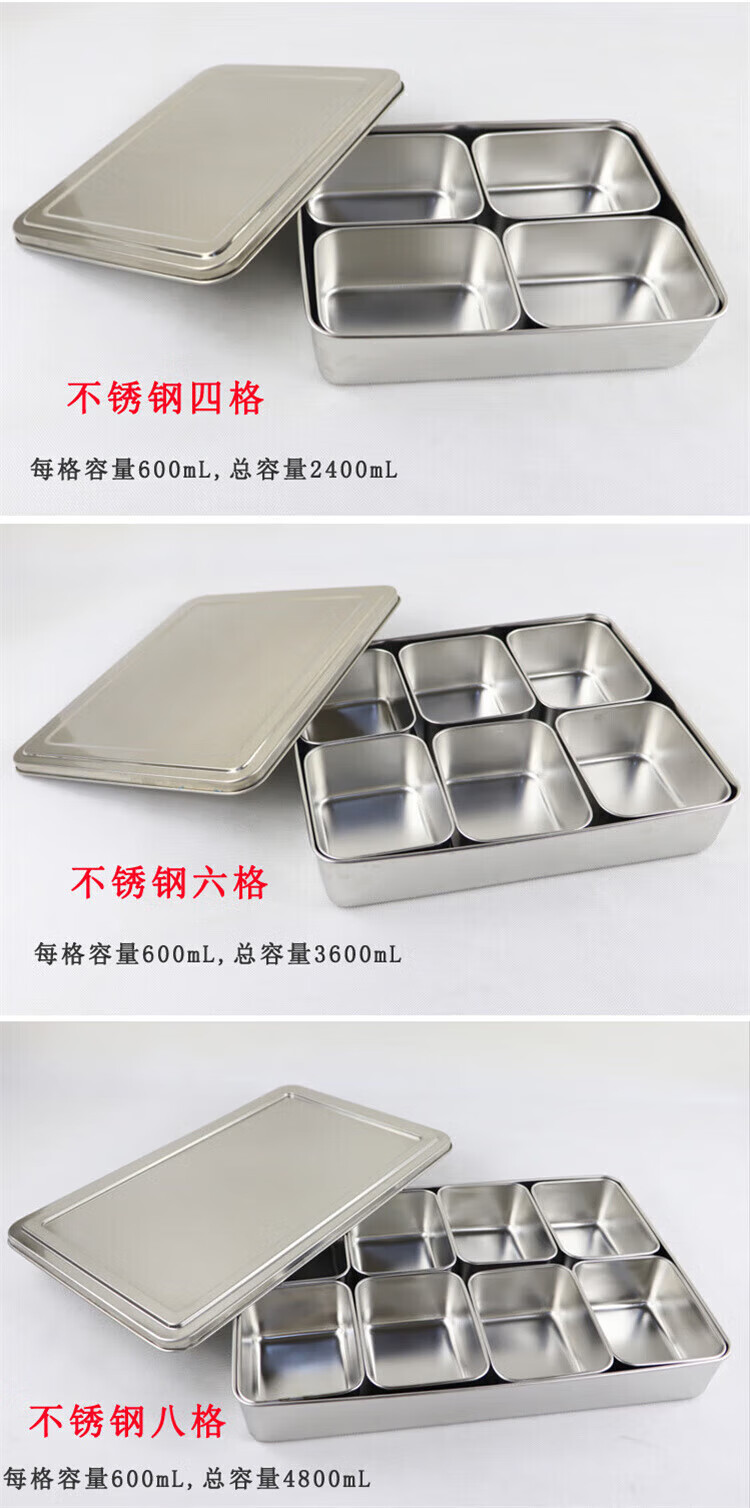 • 商品名称:丹诗致远 不锈钢留样盒调料盒配菜盒可定制 方形八格 1个装 方形八格 1个装/个