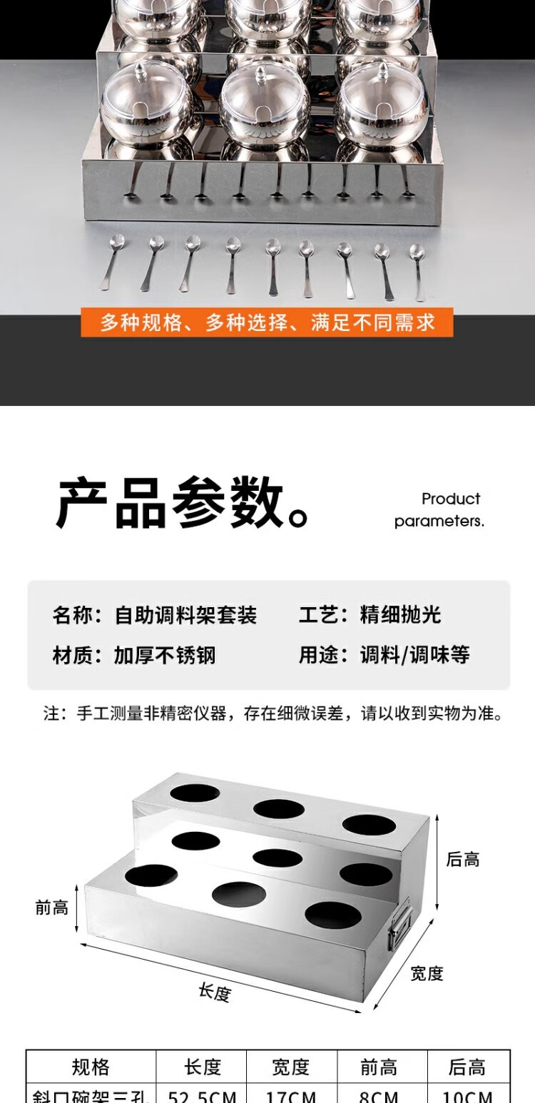 • 商品名称:京清福 自助调料架酱料调味碗套装小料展示台 【三层】斜口碗架九孔 【三层】斜口碗架九孔(配本色球形碗)/个