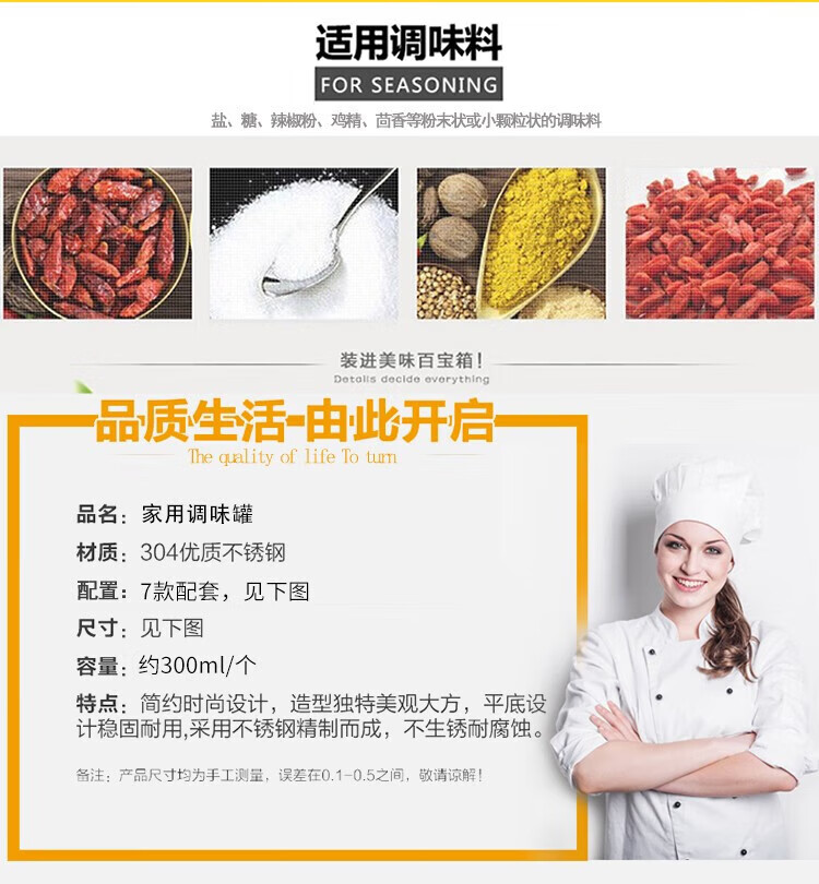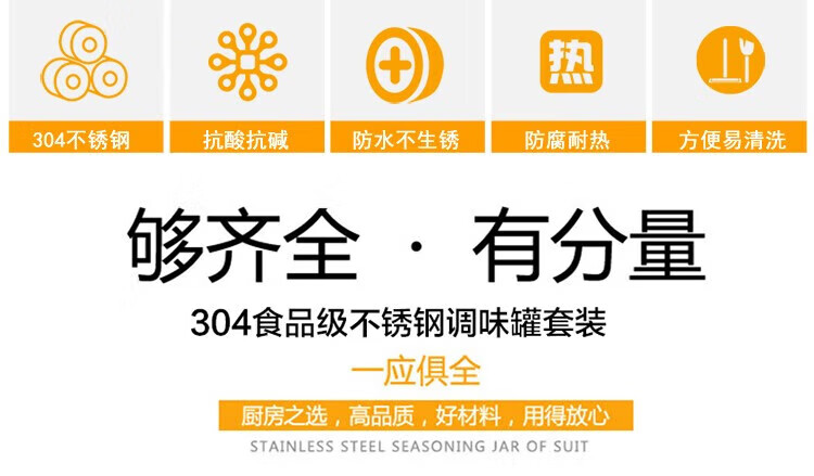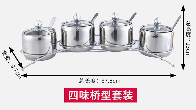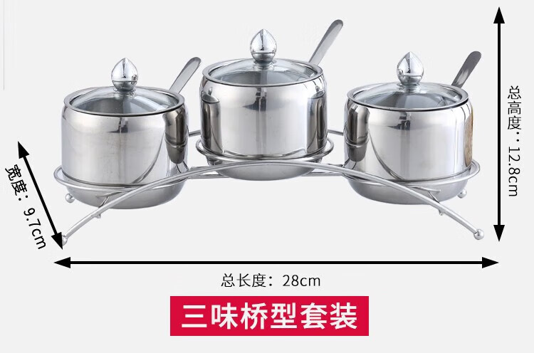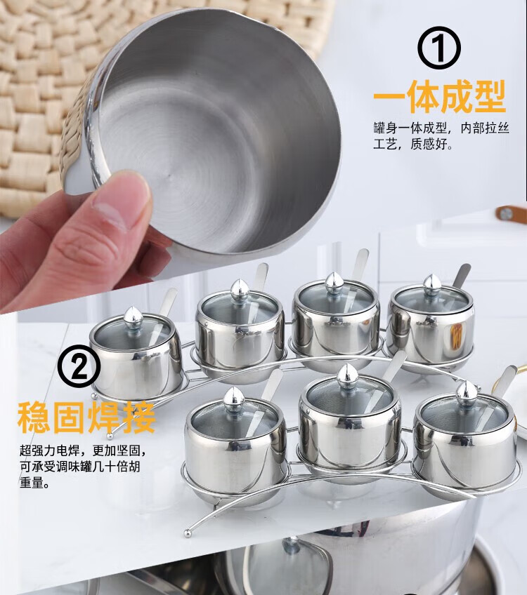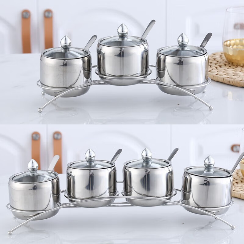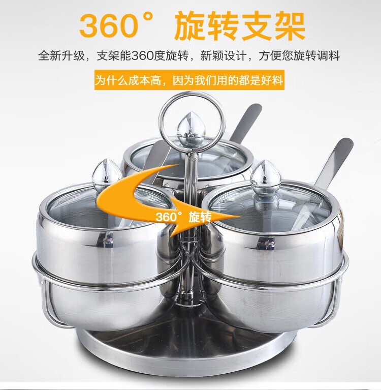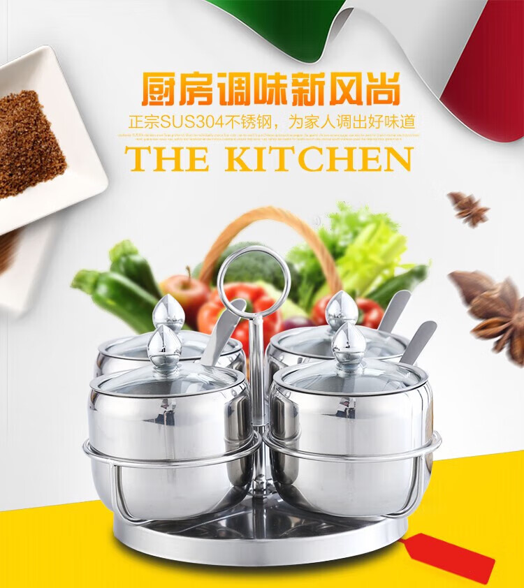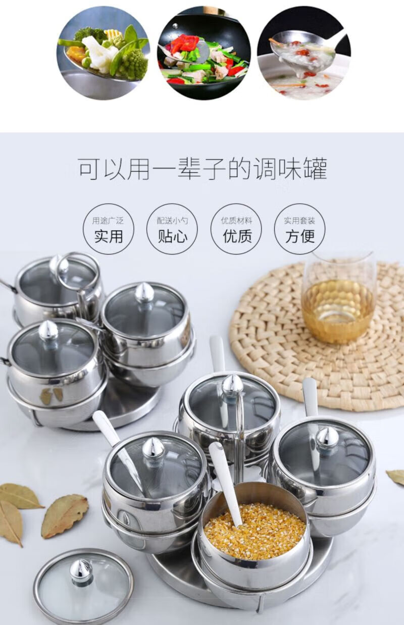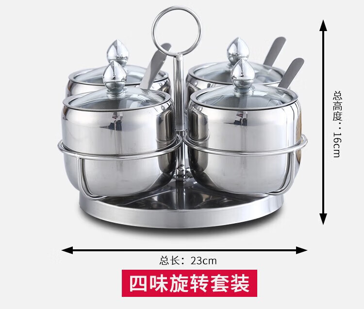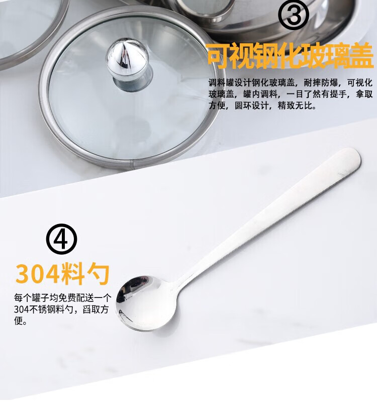 • 商品名称:丹诗致远 304不锈钢调料罐辣椒罐味精盐罐可定制 三味旋转【玻璃盖套装】 三味旋转【玻璃盖套装】/次