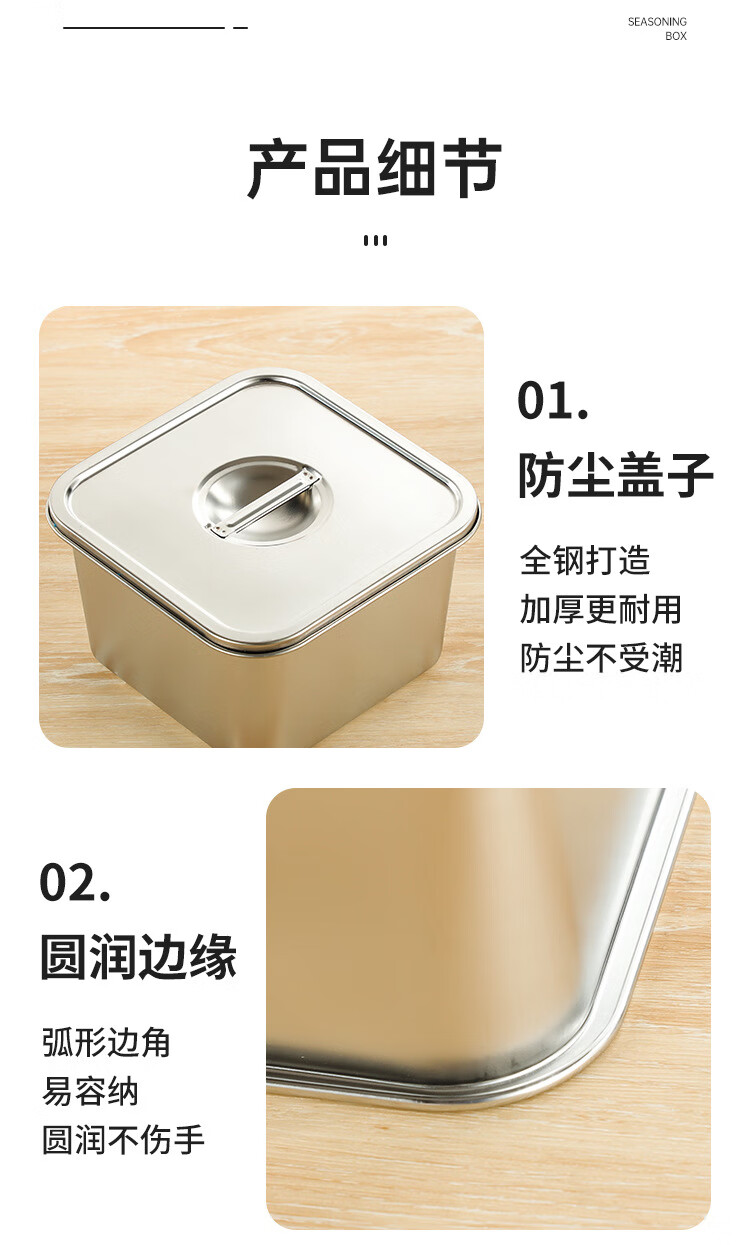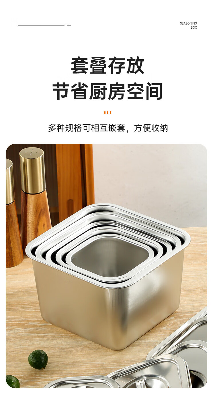 • 商品名称:厨方案不锈钢方形调料罐味盅佐料盒厨房配料盒12cm开口盖CFA-529 厨方案/个