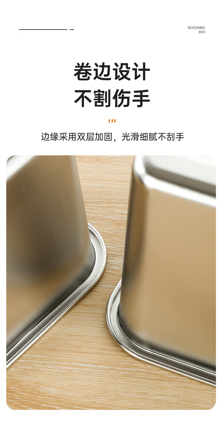 厨方案不锈钢方形调料罐味盅佐料盒厨房配料盒12cm开口盖CFA-529 厨方案/个