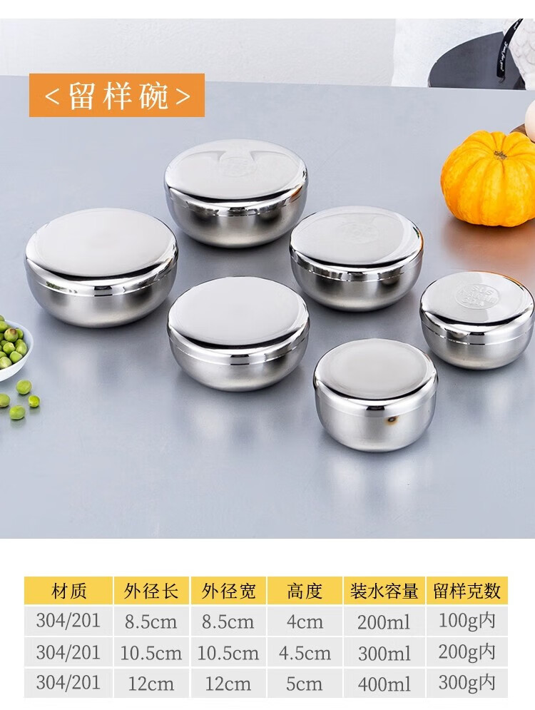 商品名称: 京清福 食品留样罐调料盒不锈钢食物留样盒 圆形8cm(201) 圆形9cm(201)/个