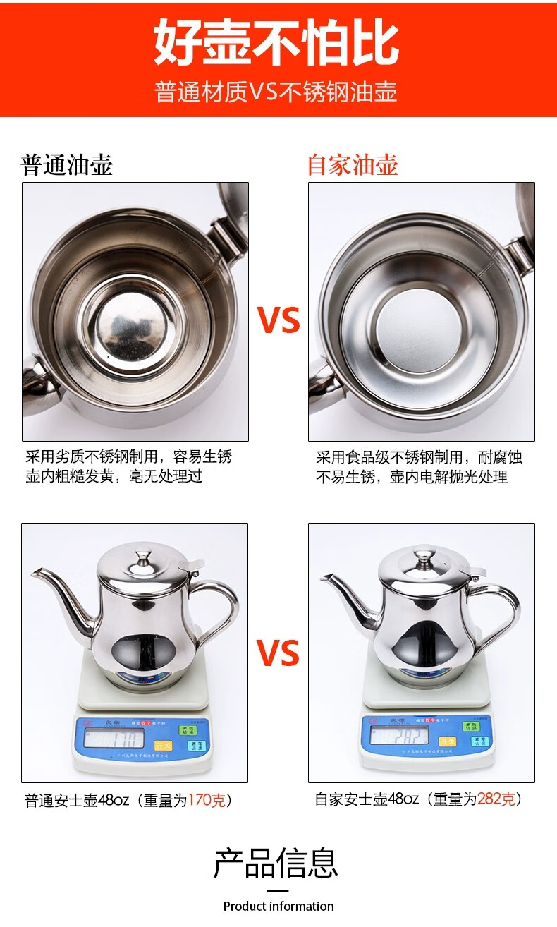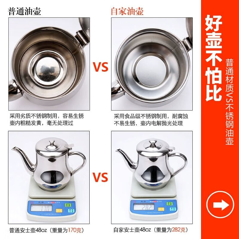 商品名称: 胜佳 不锈钢油壶防漏厨房油瓶醋壶不带滤网 安士油壶11oz 安士油壶11oz/个
