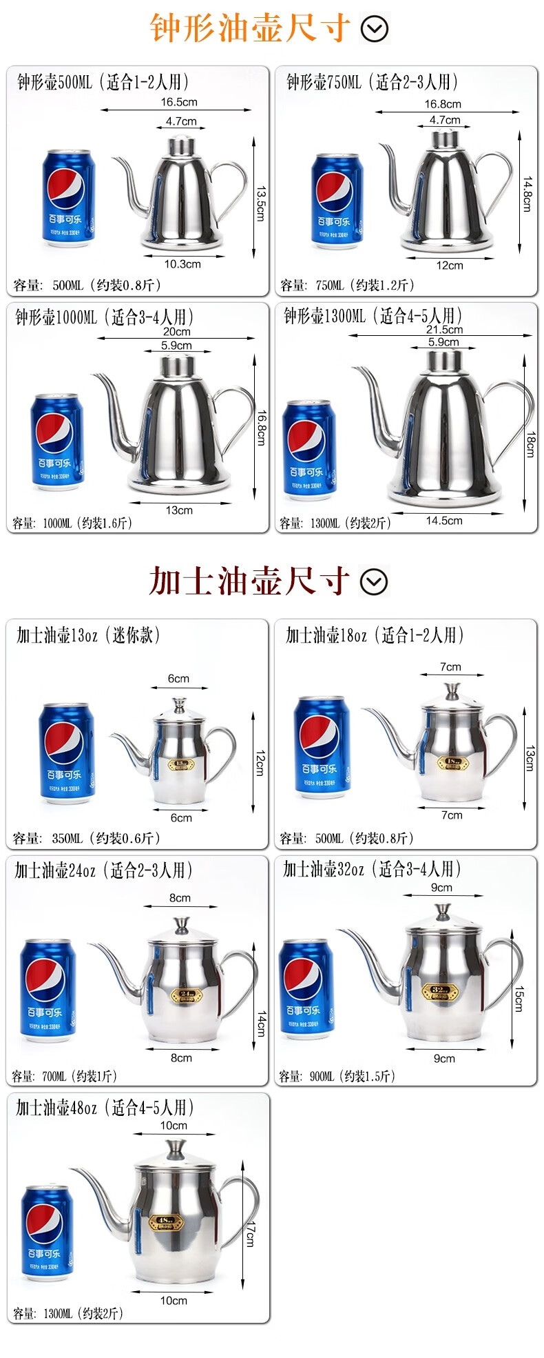 包装清单: 不锈钢油壶