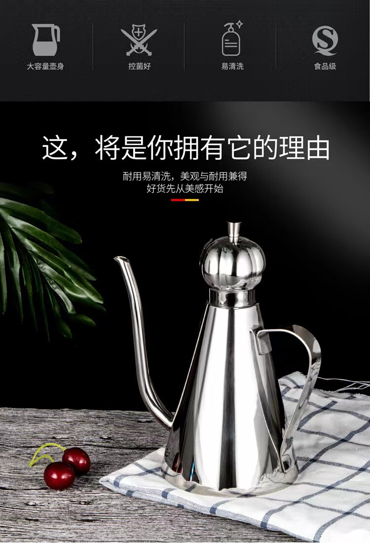 商品名称: 麦朗 食品级304不锈钢油壶锥形长嘴壶酱油壶酱醋调味壶 600ML 锥形壶600ML/个