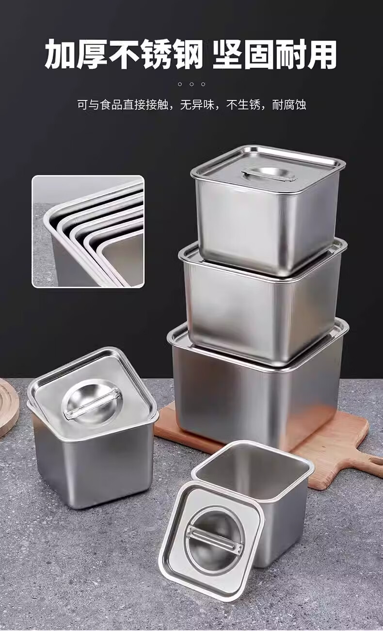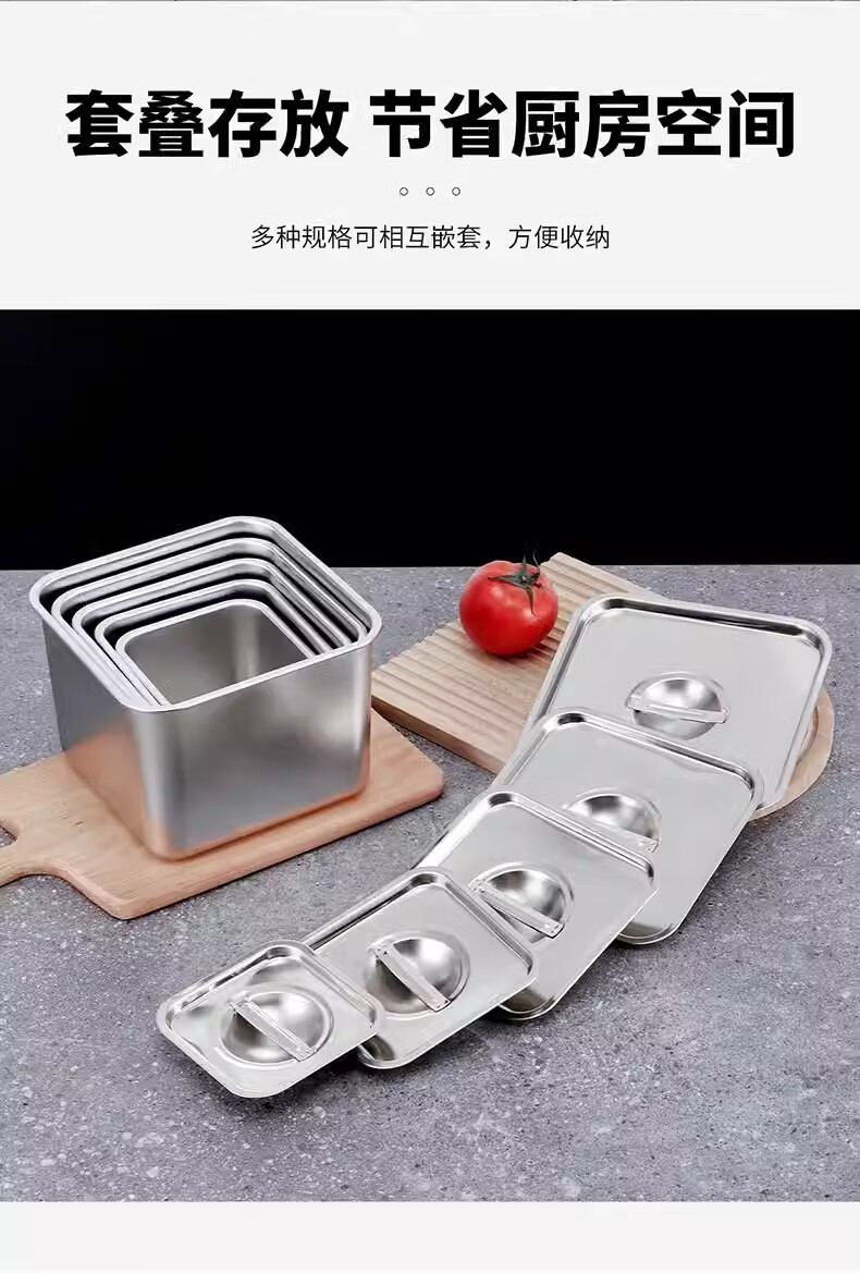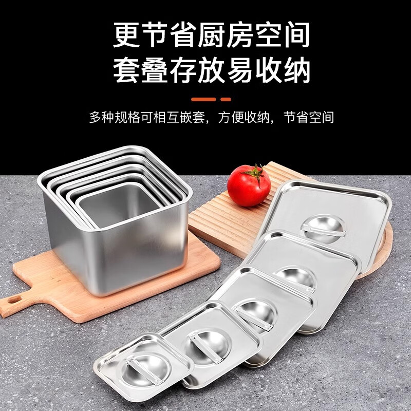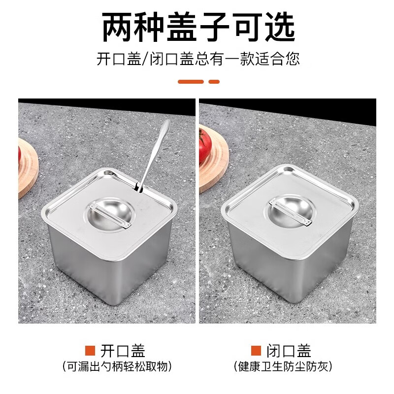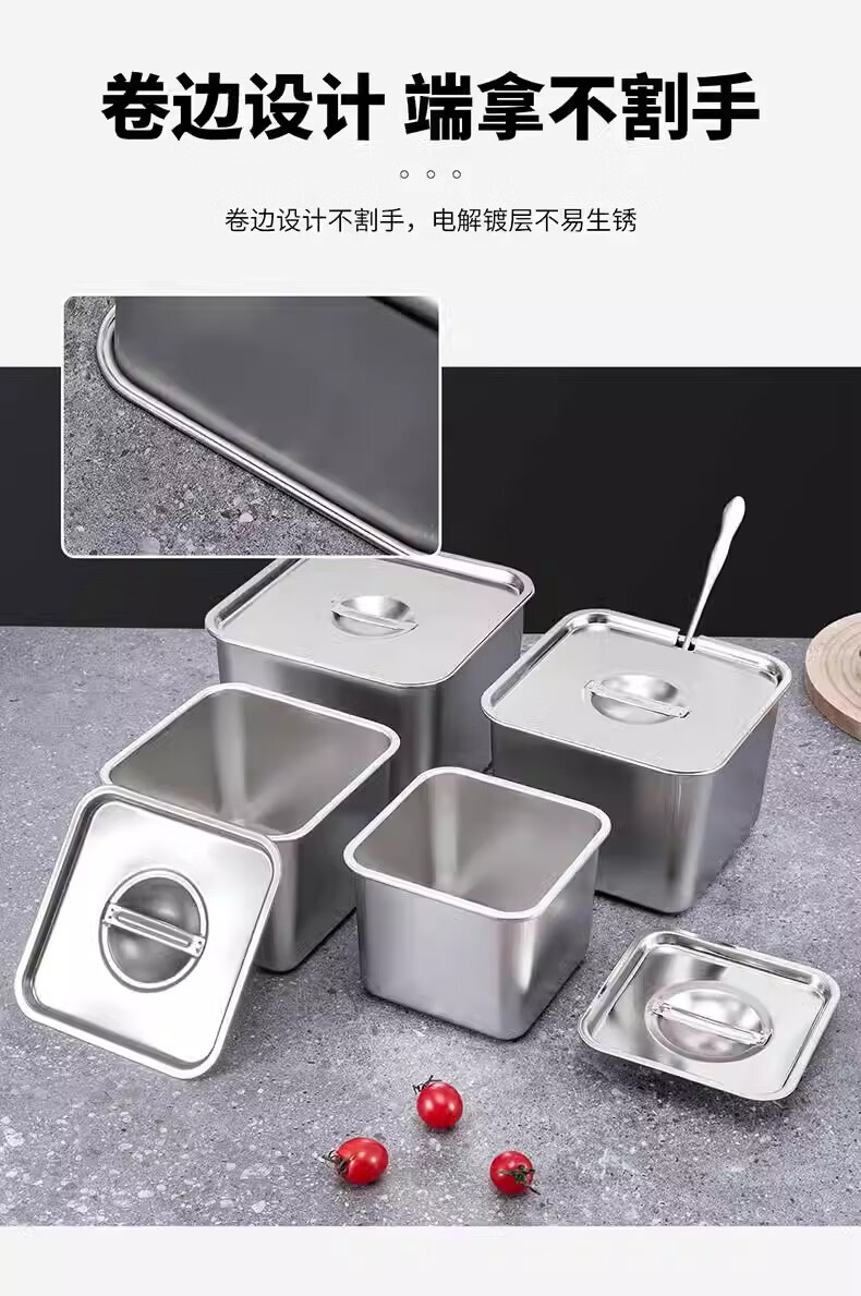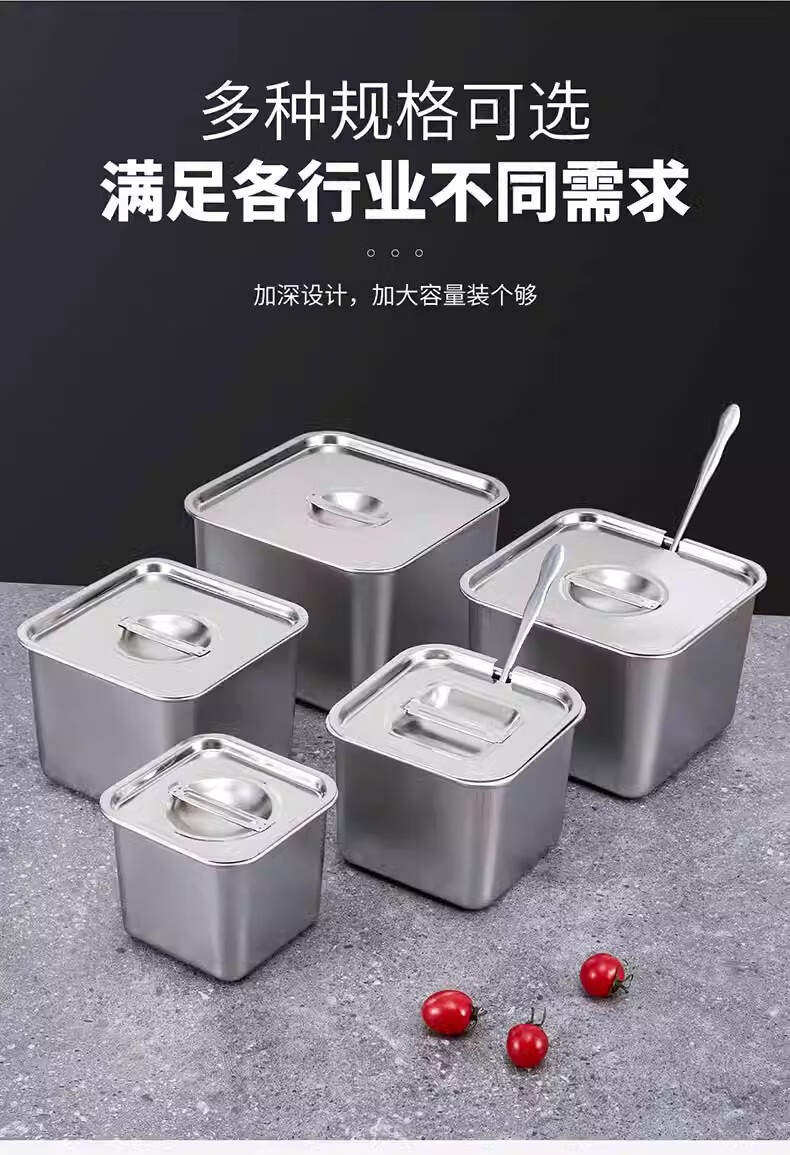 蔚毅 不锈钢方形味盅佐料盒调味缸果酱盆特厚【20cm】方盆+闭口盖 特厚【20cm】方盆+闭口盖/个