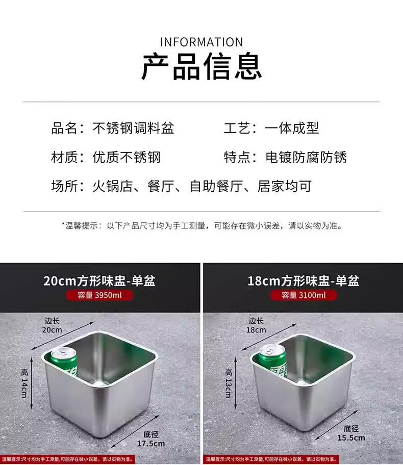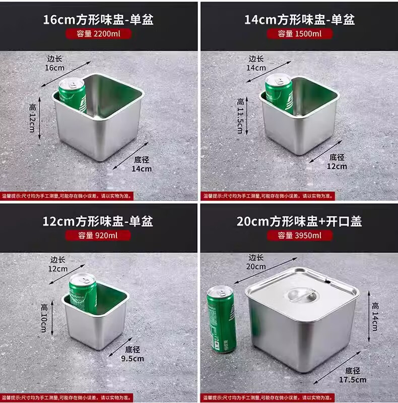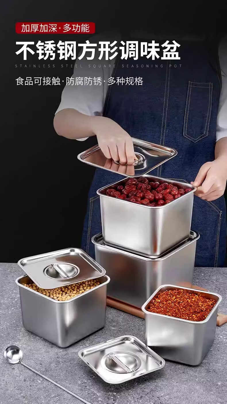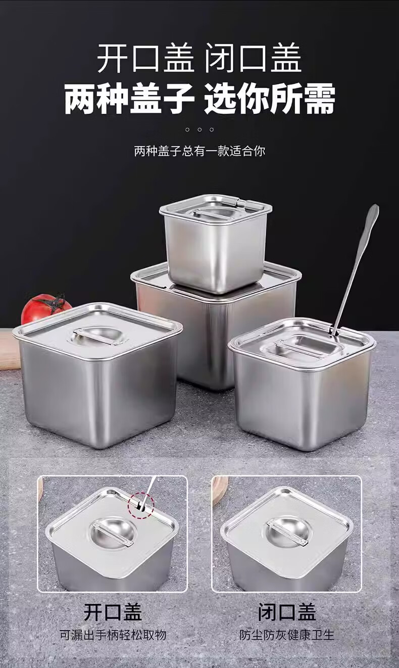 • 商品名称:蔚毅 不锈钢方形味盅佐料盒调味缸果酱盆特厚【20cm】方盆+闭口盖 特厚【20cm】方盆+闭口盖/个