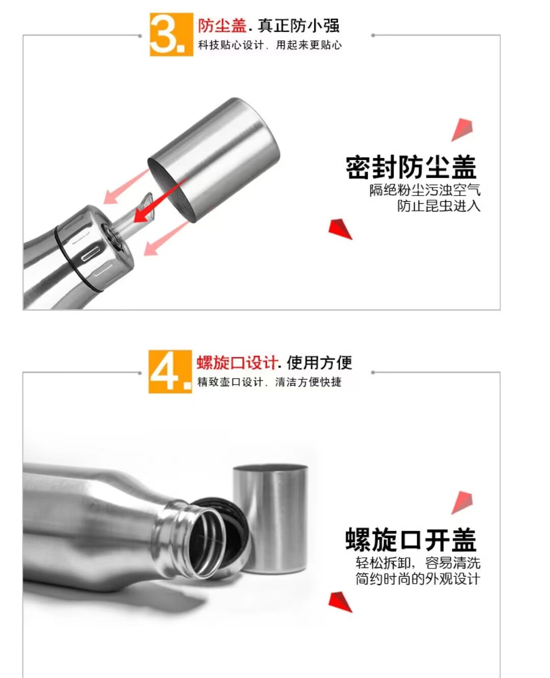 • 商品名称:麦朗 304不锈钢油壶 防尘防漏食用油瓶 酱醋带盖调味罐 1000ml 单个装 100ml/个