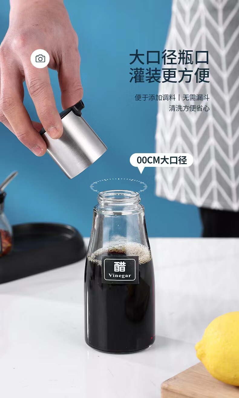 商品名称: 麦朗 304不锈钢调味瓶 醋瓶酱油瓶无铅玻璃瓶 230ml 230ml/个