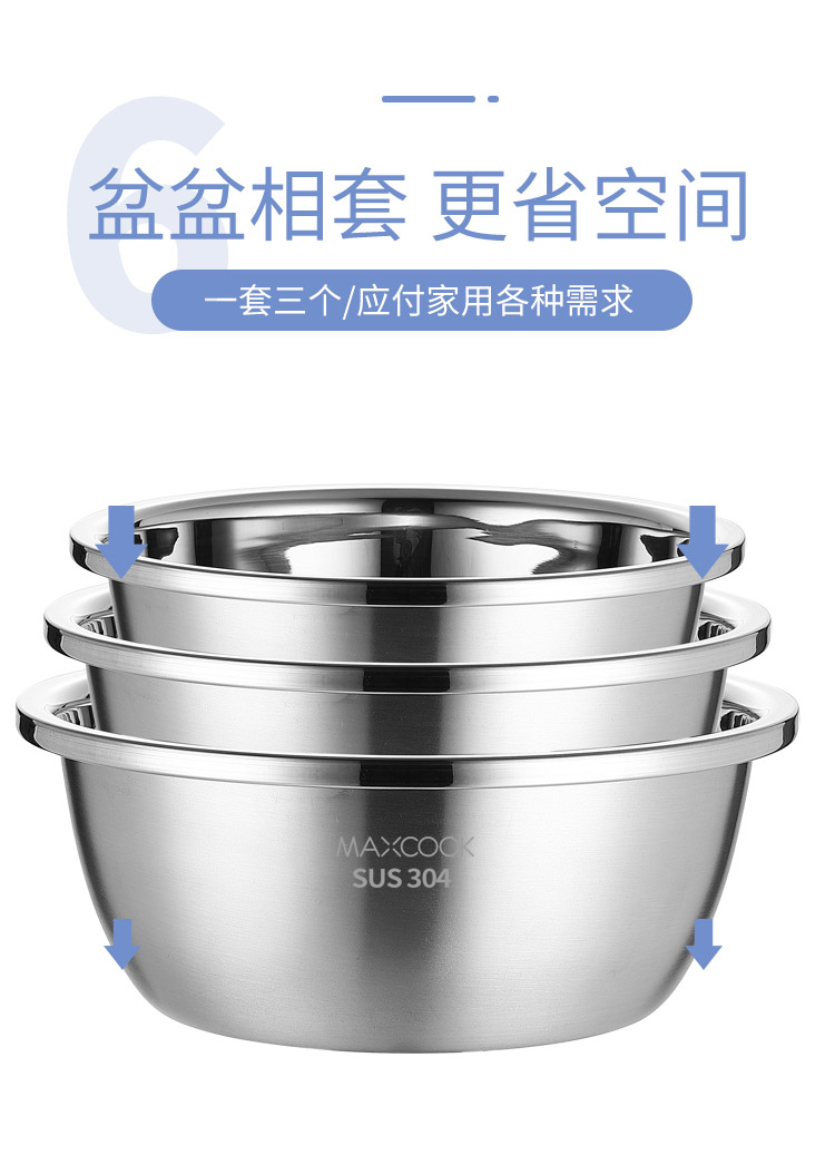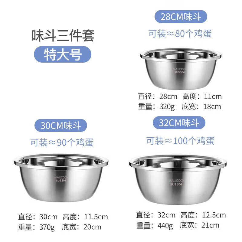 美厨(maxcook)304不锈钢洗菜盆 加大加厚调料盆洗菜盆套装 特大号三件套MCWA959 304不锈钢洗菜盆/只