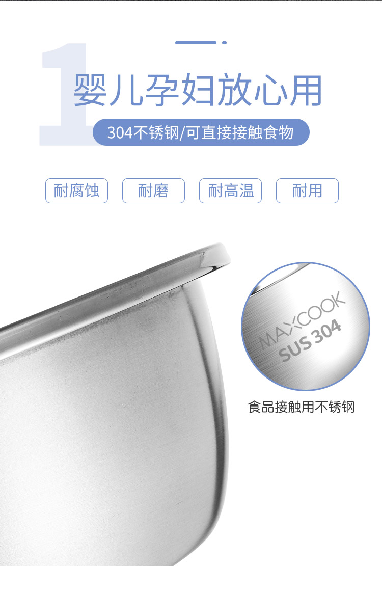 厨具  > 厨房储物  > 料理盆  >  美厨/maxcook  >  美厨(maxcook)304不锈钢洗菜盆 加大加厚调料盆洗菜盆套装 特大号三件套MCWA959 304不锈钢洗菜盆/只