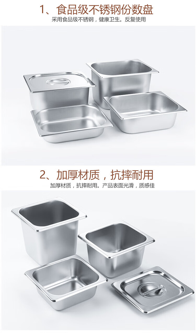 • 商品名称:今万福 美式防挤份数盆盖子1/1不锈钢盆份数盒打菜盆 盖子 304不锈钢份数盆/个