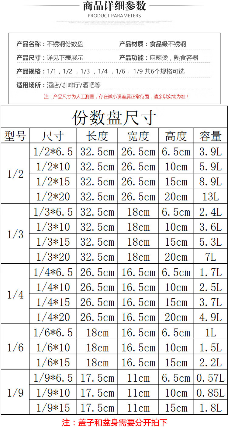 包装清单: 不锈钢份数盆盖子 1/2闭口盖 *1