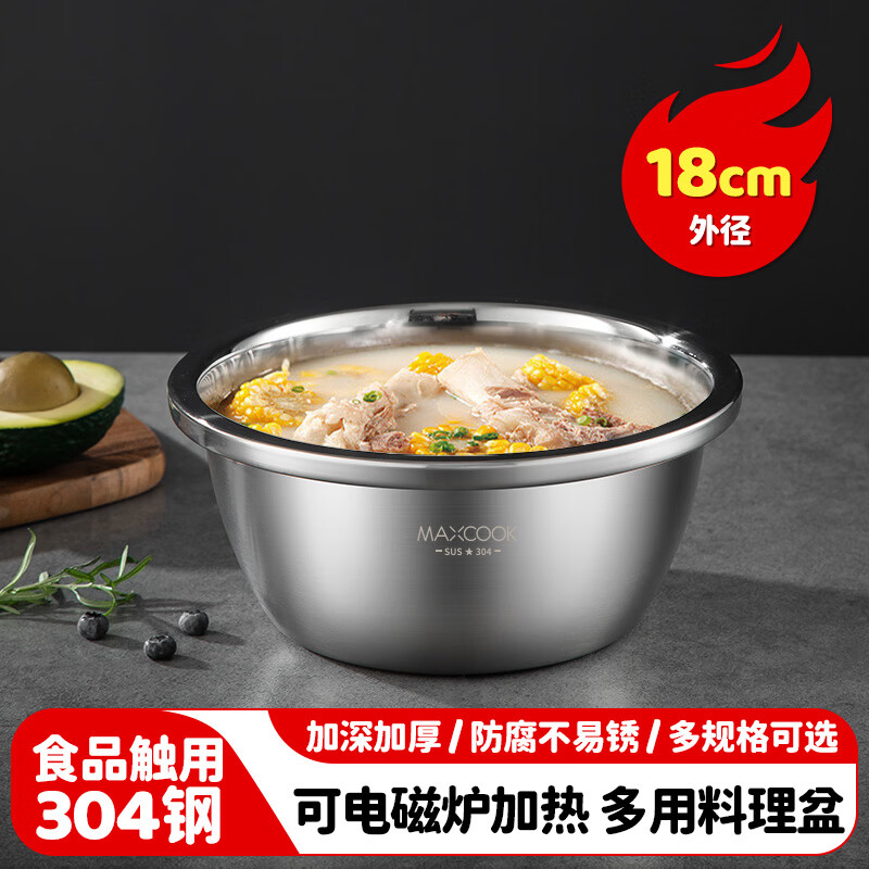 厨具  > 厨房储物  > 料理盆  >  美厨/maxcook  >  美厨(maxcook)304不锈钢盆调料盆 加厚味斗18CM 洗菜盆沙拉盆和面盆MCWA009-18 加厚304不锈钢调料盆/个