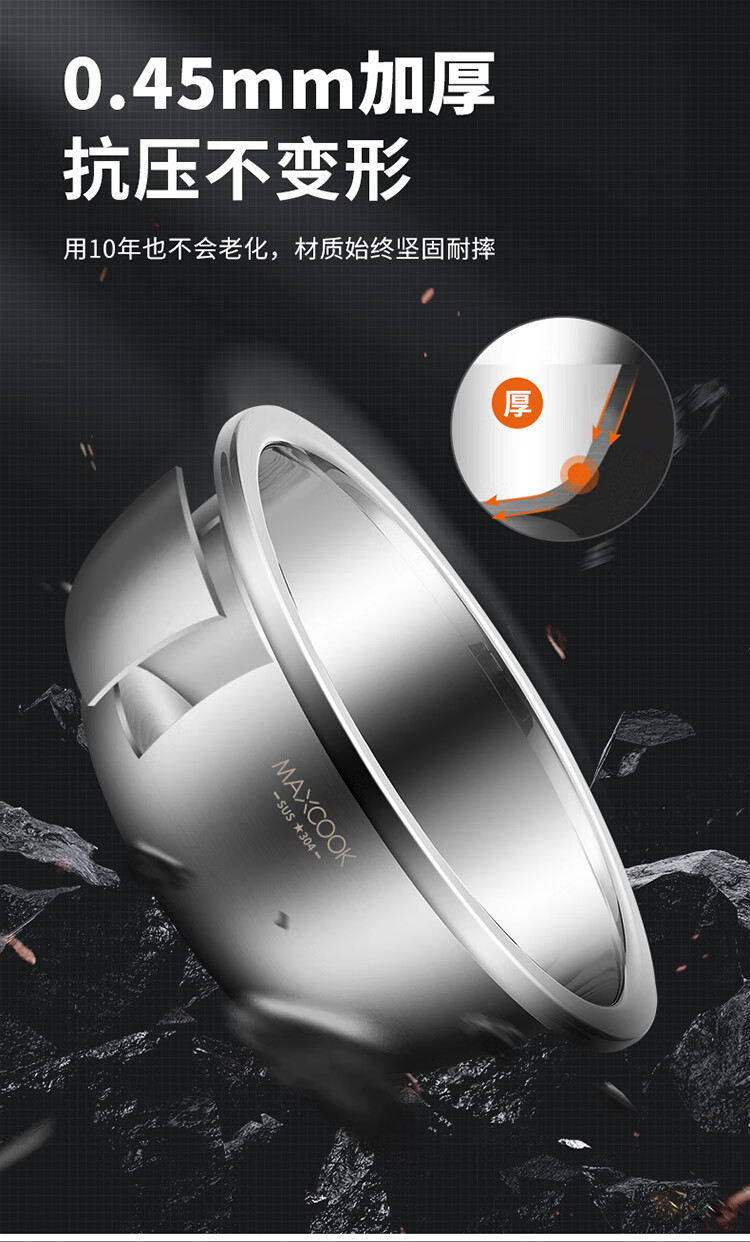 • 商品名称:美厨(maxcook)304不锈钢盆调料盆 加厚味斗18CM 洗菜盆沙拉盆和面盆MCWA009-18 加厚304不锈钢调料盆/个