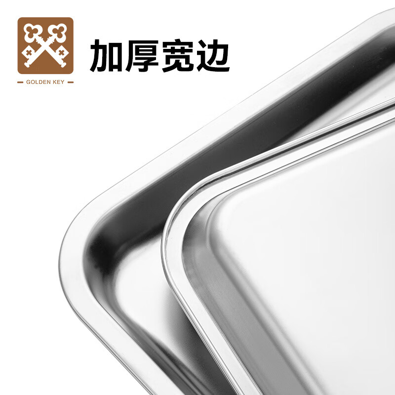 金钥匙(GOLDEN KEY)不锈钢平底浅方盆长方形托盘蒸饭盘菜盘饺子盘水果盘GK-FP6040-25 不锈钢浅方盆/个