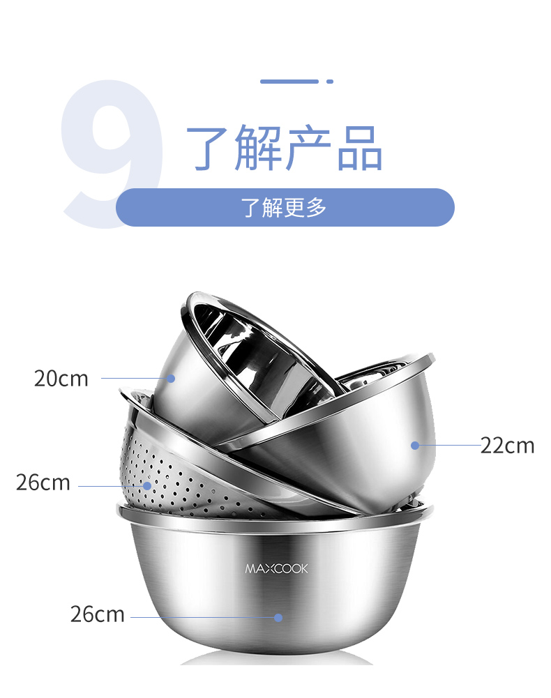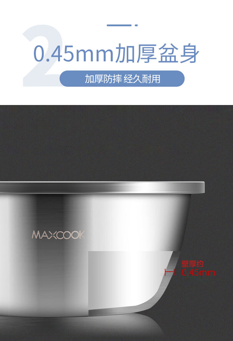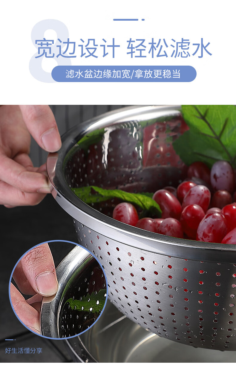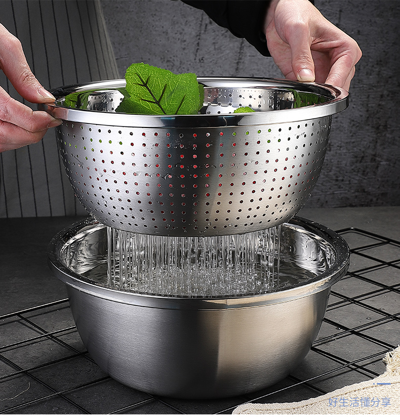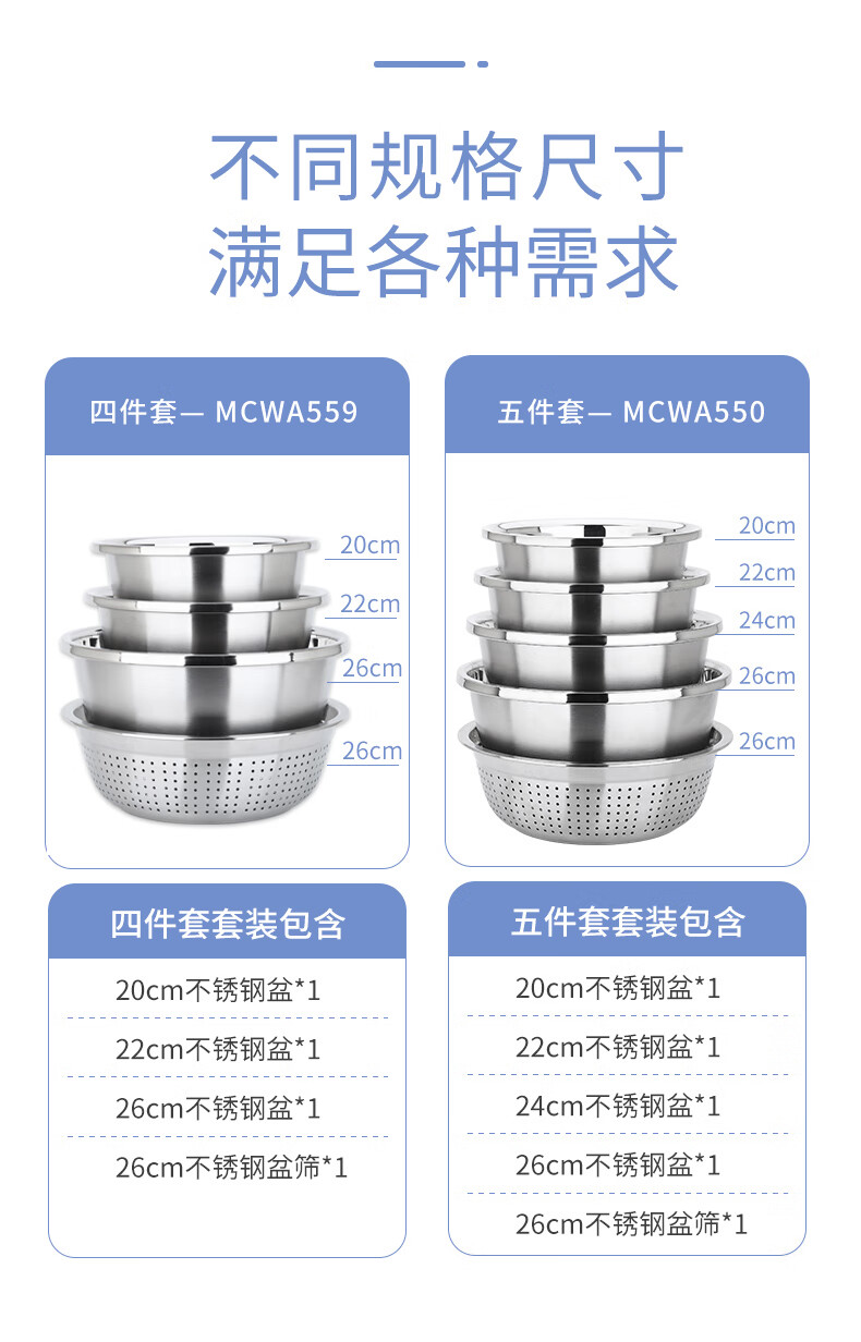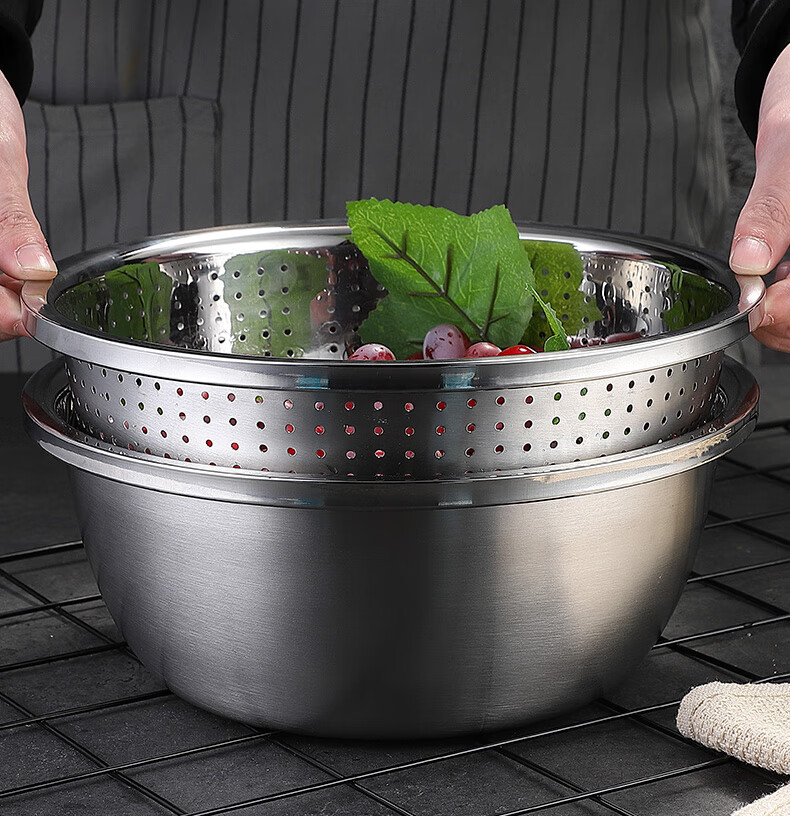 • 商品名称:美厨(maxcook)304不锈钢盆筛四件套 加大加厚调料盆洗菜盆 米筛味斗套装MCWA559 304不锈钢盆沥水篮/只