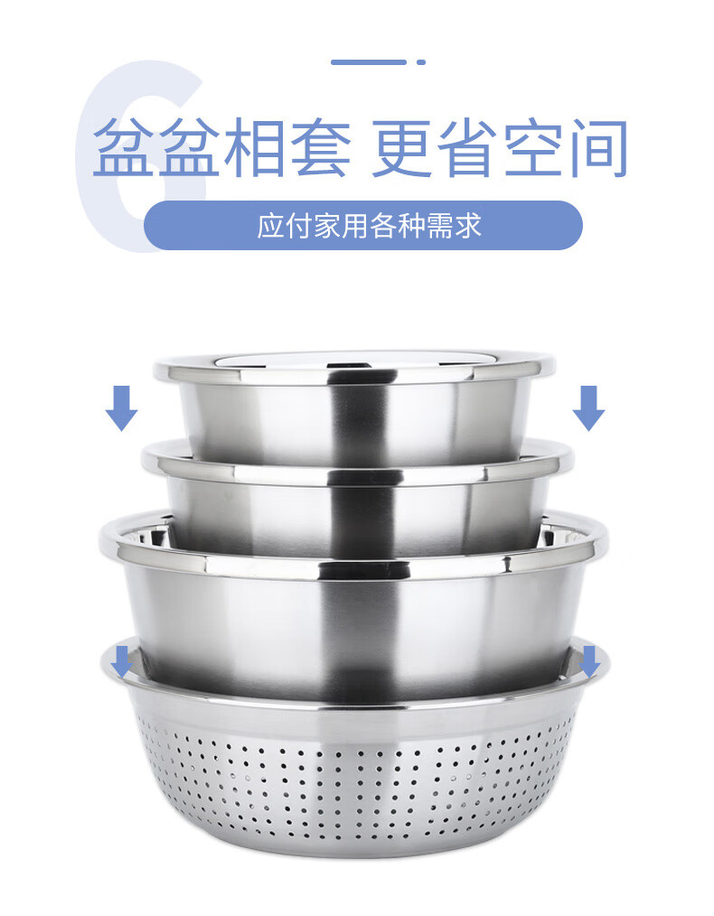 包装清单: 不锈钢盆四件套