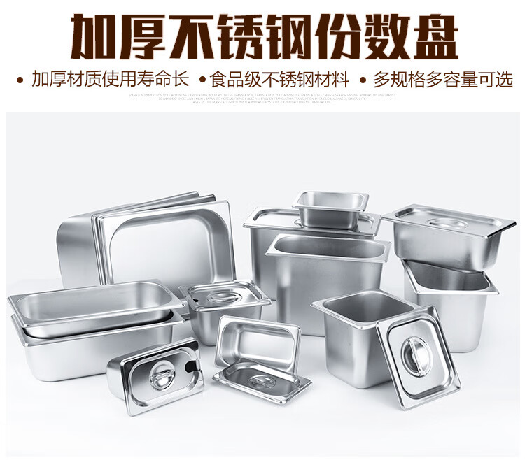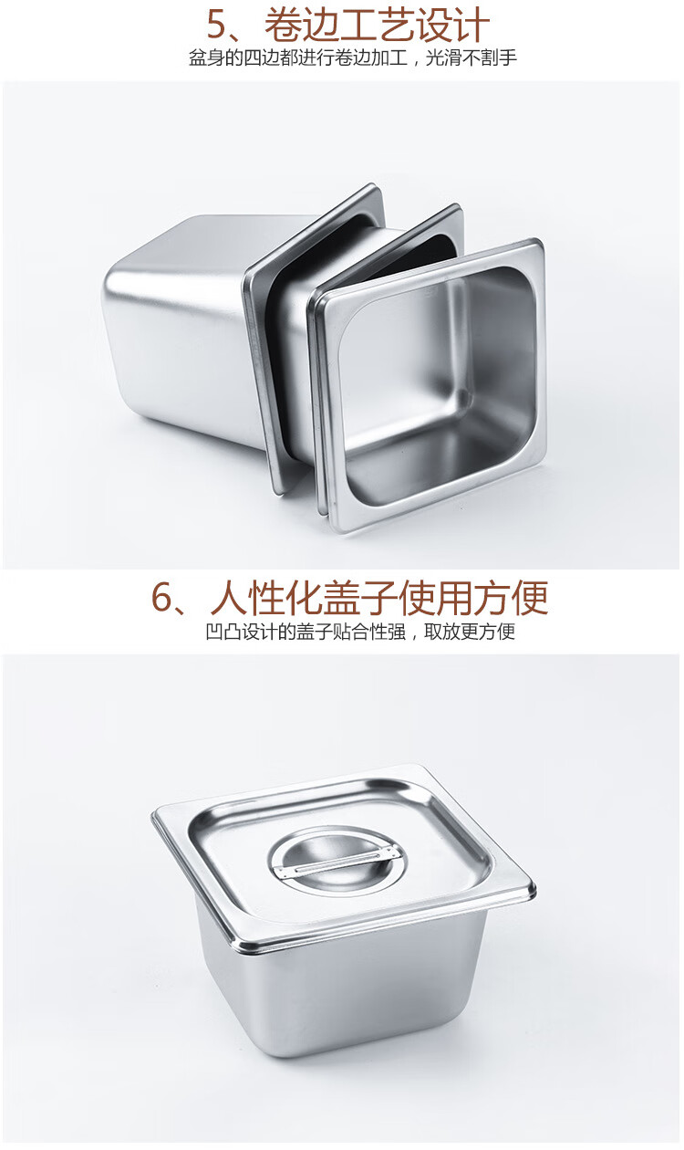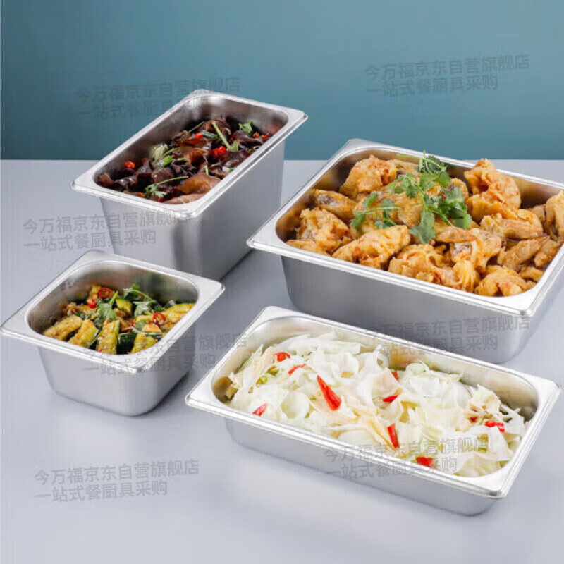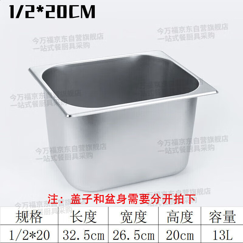 • 商品名称:今万福 美式防挤份数盆1/2不锈钢盆份数盒打菜盆200mm自助餐盆不含盖子 不锈钢份数盆/个