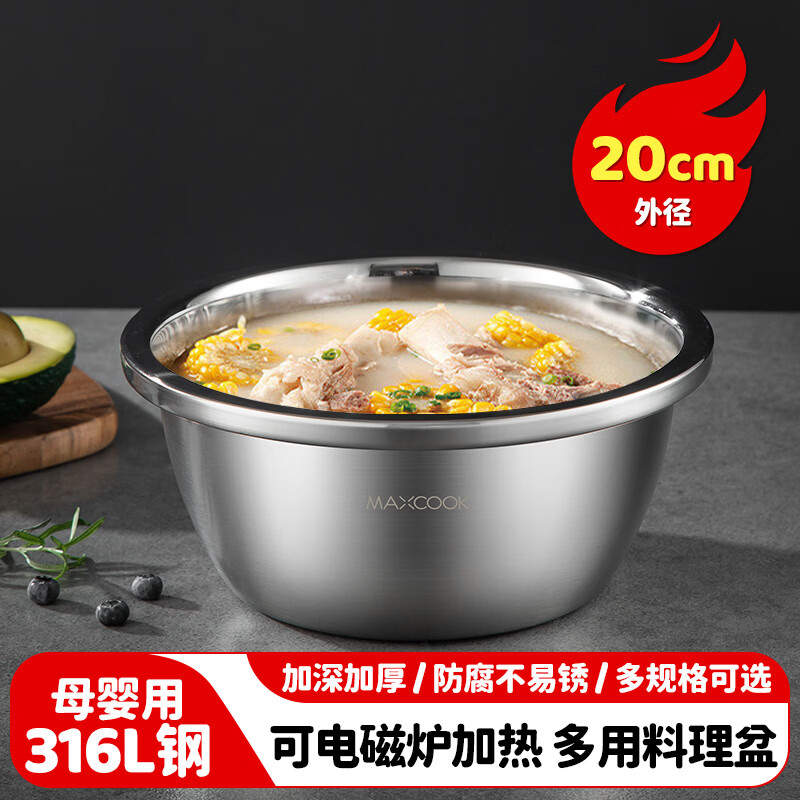 厨具  > 厨房储物  > 料理盆  >  美厨/maxcook  >  美厨(maxcook)316L不锈钢盆调料盆 加厚味斗20CM 洗菜盆沙拉盆和面盆MCWA1816 316L不锈钢调料盆/个