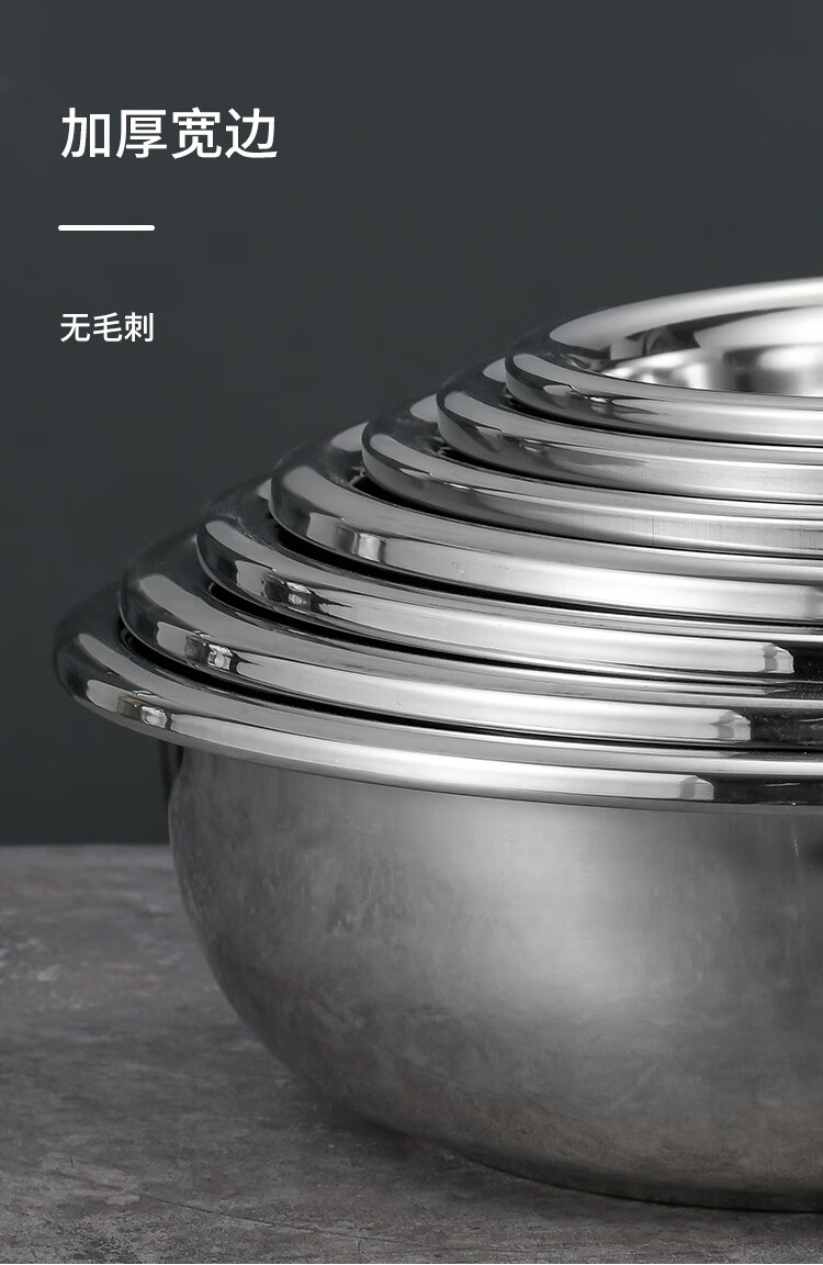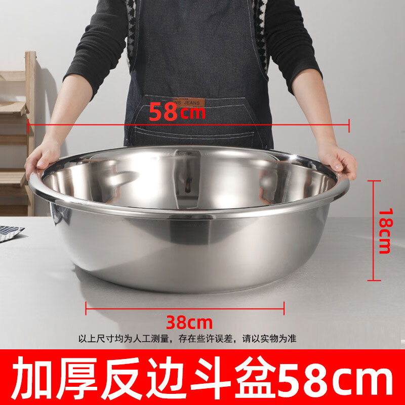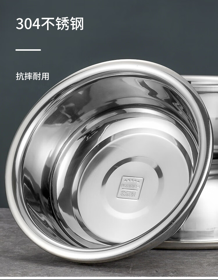 • 商品名称:今万福大盆子304不锈钢和面盆洗菜盆家用厨房加厚加深脸盆60cm 今万福/个