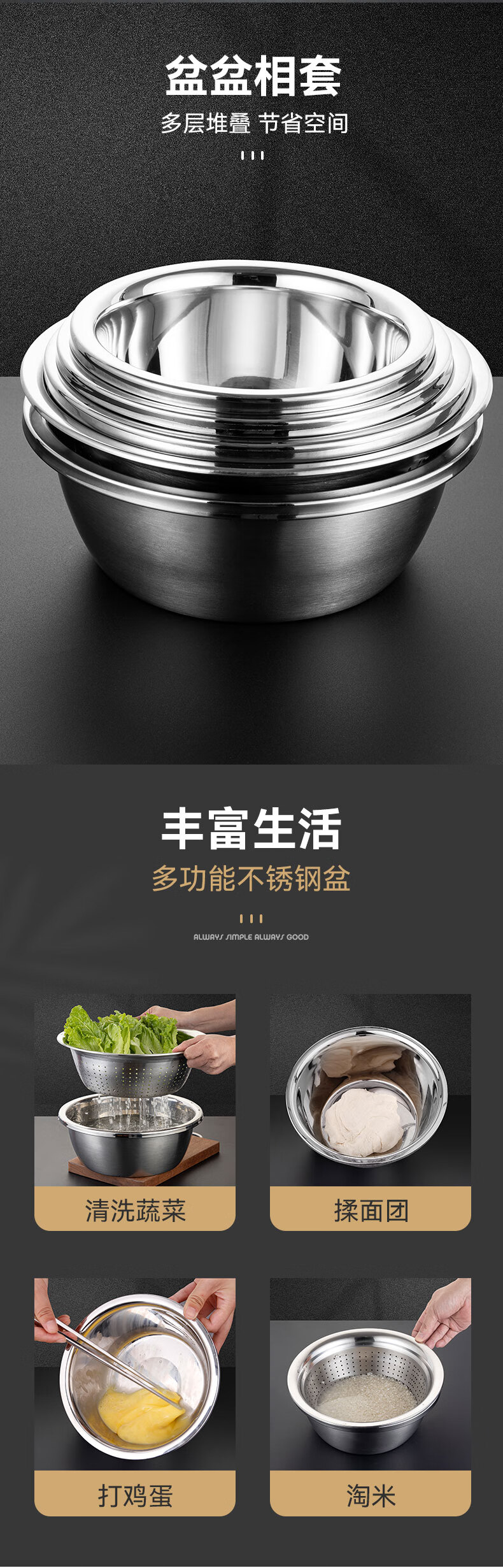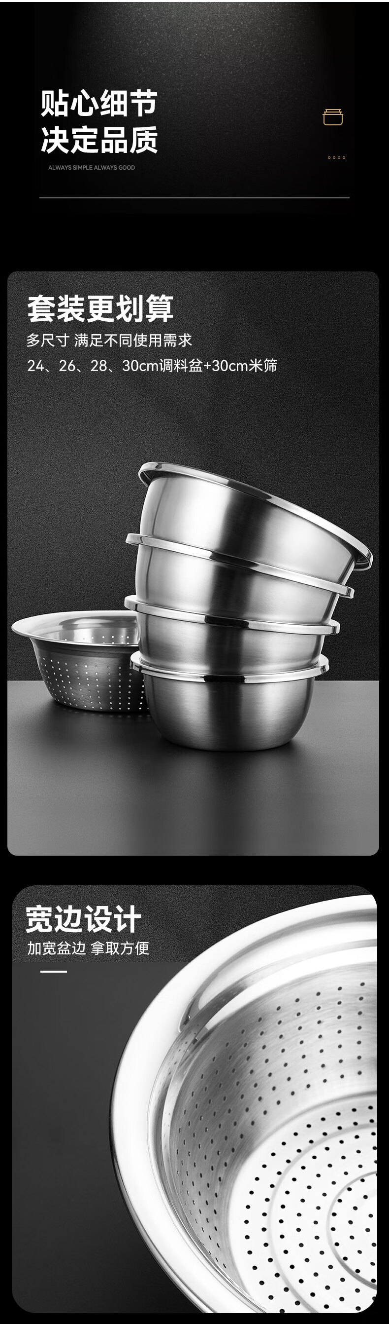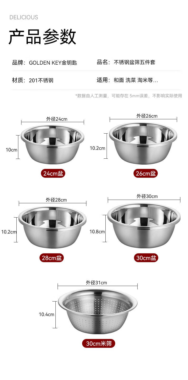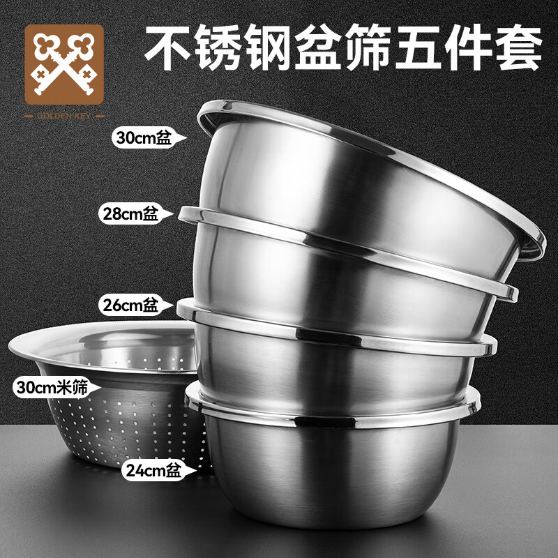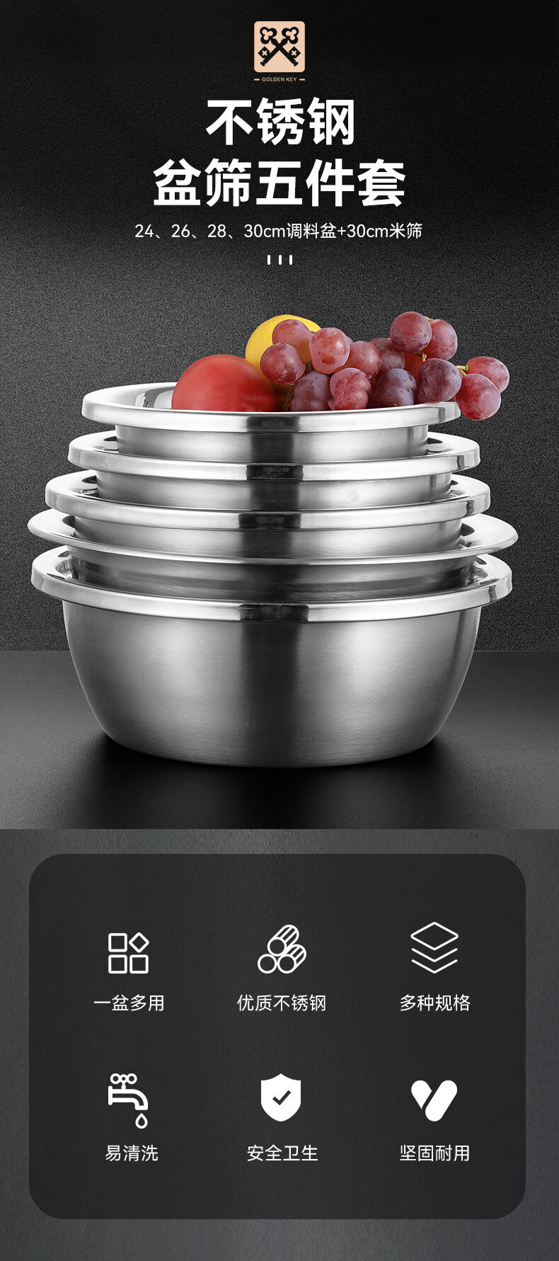 商品名称: 金钥匙(GOLDEN KEY)不锈钢洗菜盆家用沥水篮淘米盆筛多用调料盆大号五件套GK-T50B4-B 不锈钢洗菜盆/个