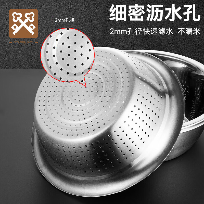 金钥匙(GOLDEN KEY)不锈钢洗菜盆家用沥水篮淘米盆筛多用调料盆大号五件套GK-T50B4-B 不锈钢洗菜盆/个