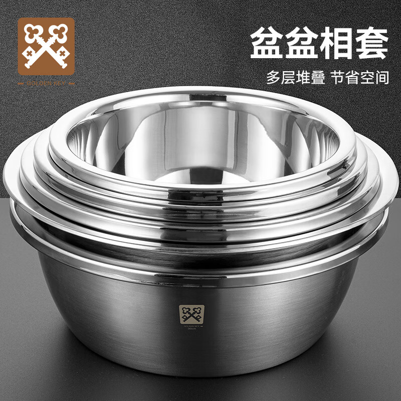 厨具  > 厨房储物  > 料理盆  >  金钥匙/GOLDEN KEY  >  金钥匙(GOLDEN KEY)不锈钢洗菜盆家用沥水篮淘米盆筛多用调料盆大号五件套GK-T50B4-B 不锈钢洗菜盆/个