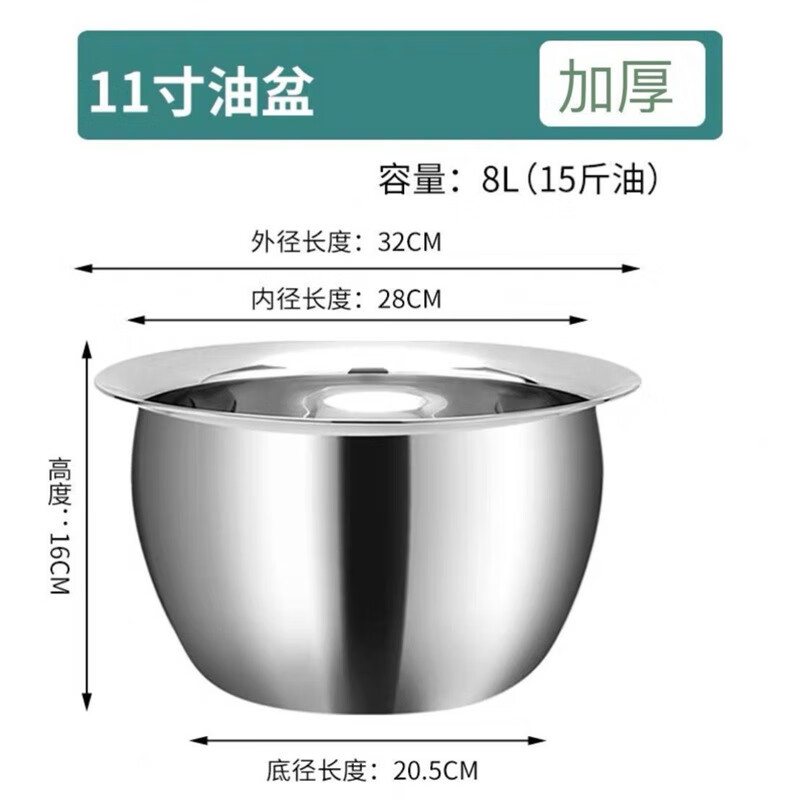 商品名称: 今万福 不锈钢油鼓盆 加厚不锈钢无磁涨形油鼓盆厨房用品 加厚11寸油盆 油盆/个