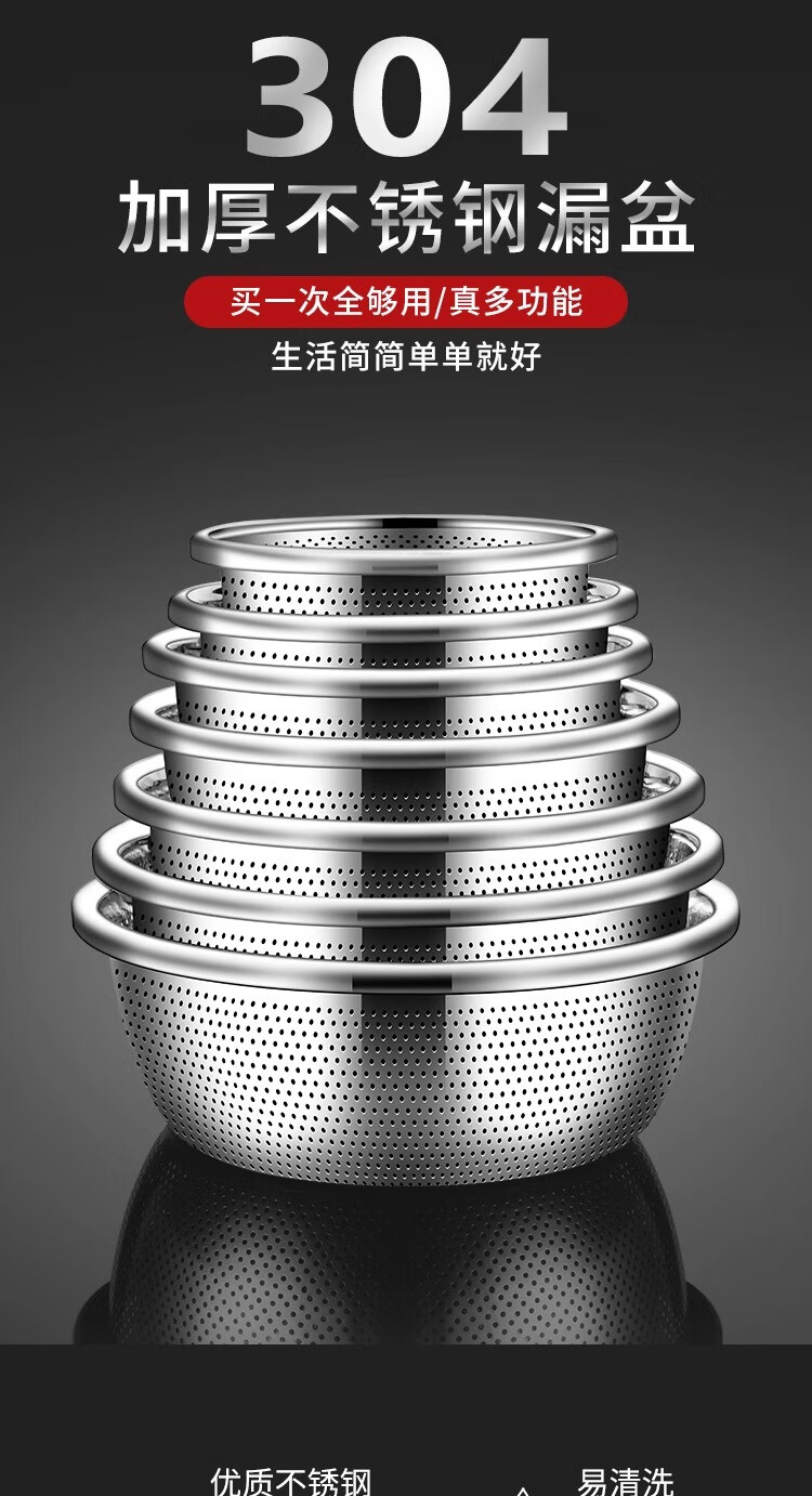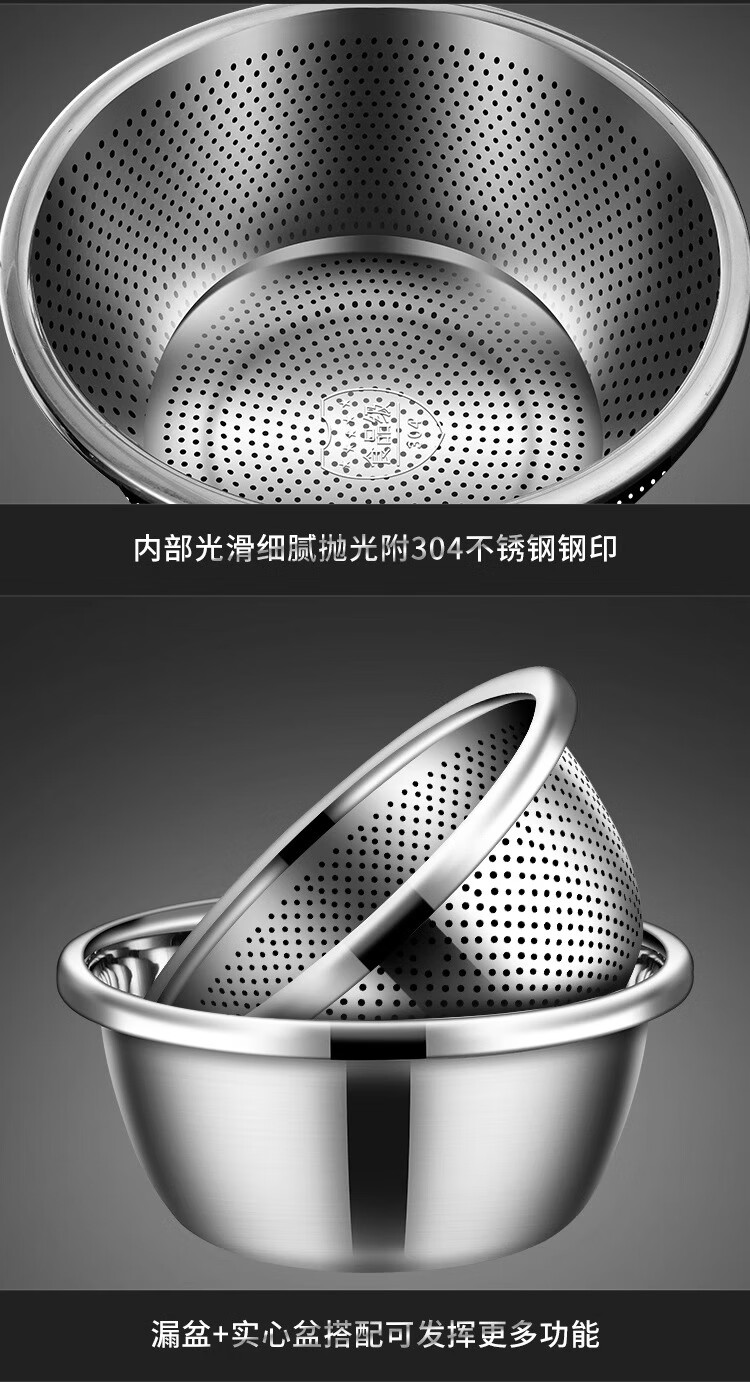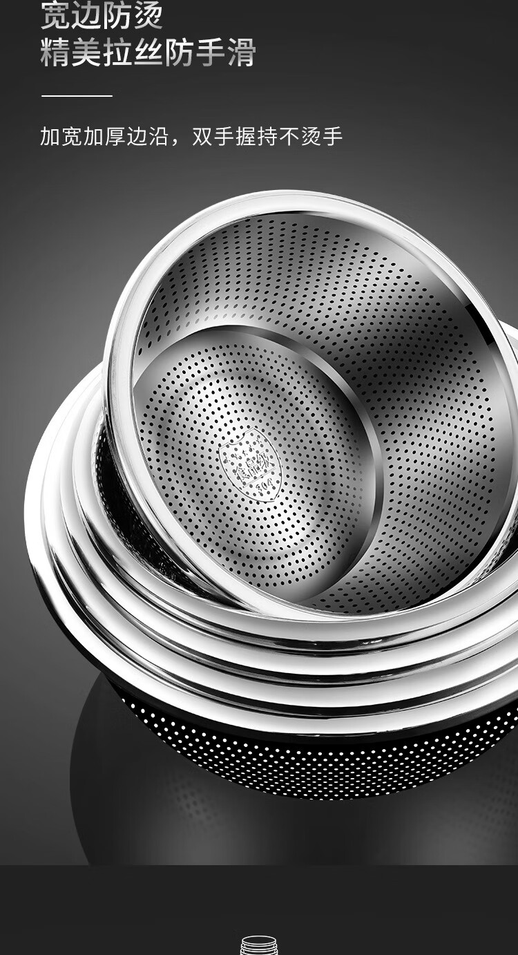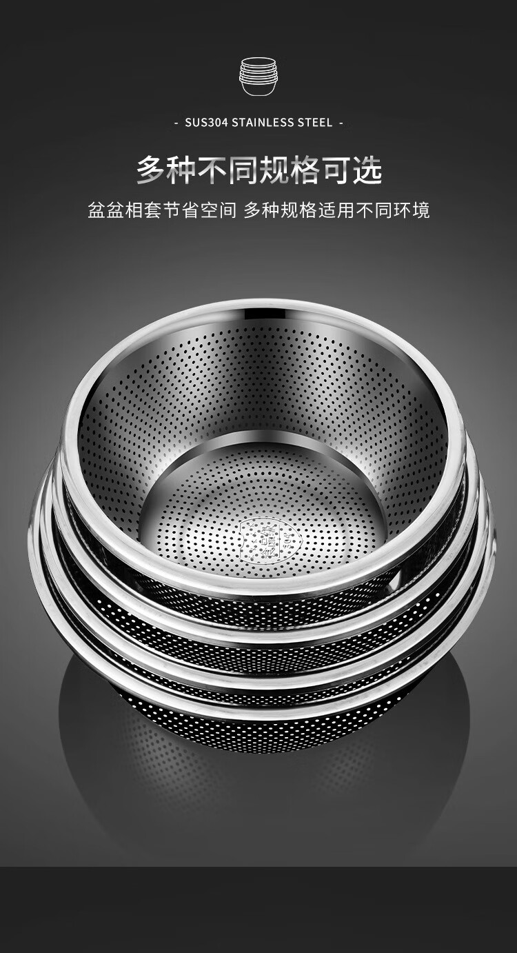 • 商品名称:膳于福304不锈钢沥水篮洗菜盆洗米筛厨房神器水果篮漏盆淘米盆SYF-1013 SYF-1013/个
