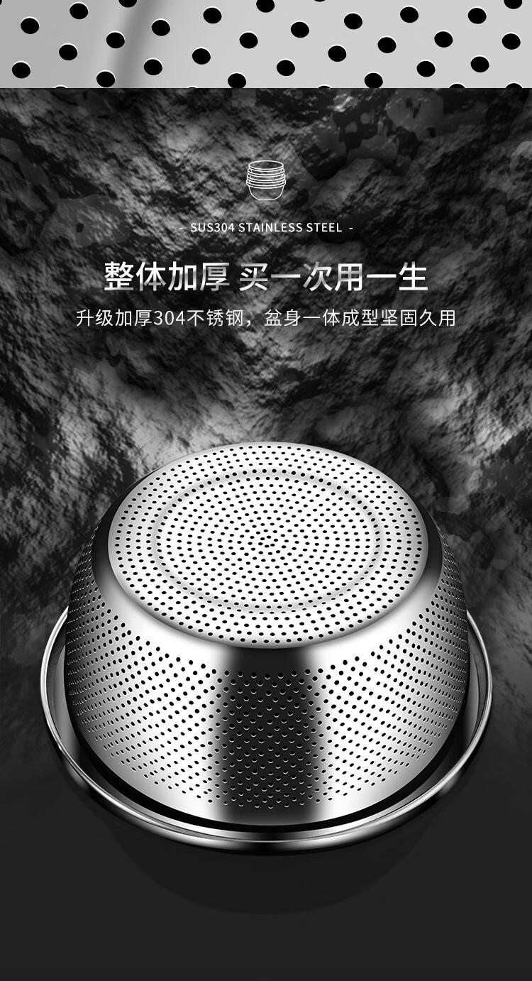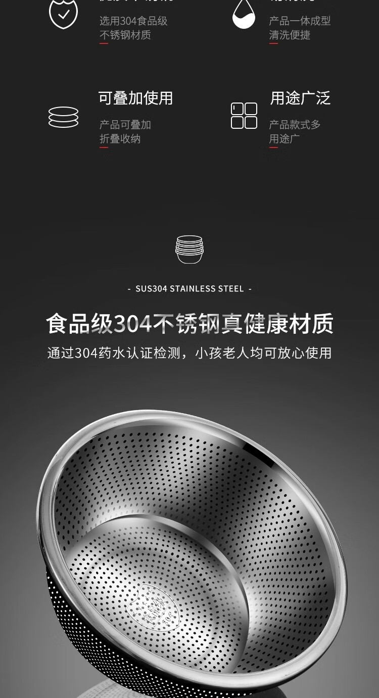 厨具  > 厨房储物  > 料理盆  >  膳于福  >  膳于福304不锈钢沥水篮洗菜盆洗米筛厨房神器水果篮漏盆淘米盆SYF-1013 SYF-1013/个