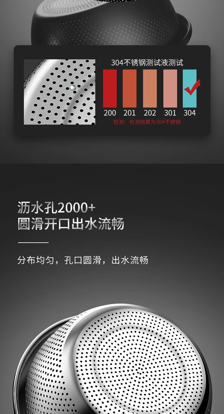 膳于福304不锈钢沥水篮洗菜盆洗米筛厨房神器水果篮漏盆淘米盆SYF-1013 SYF-1013/个