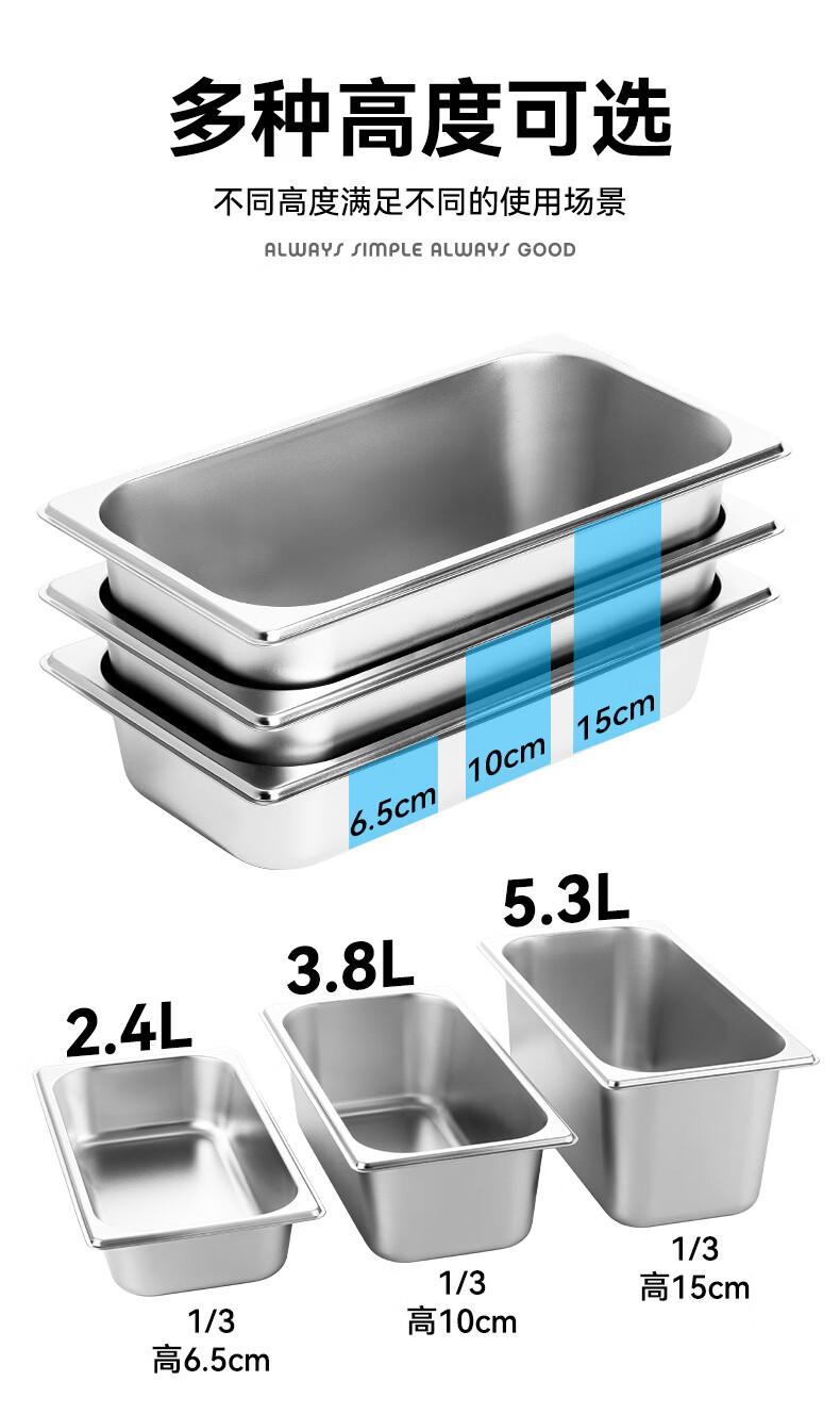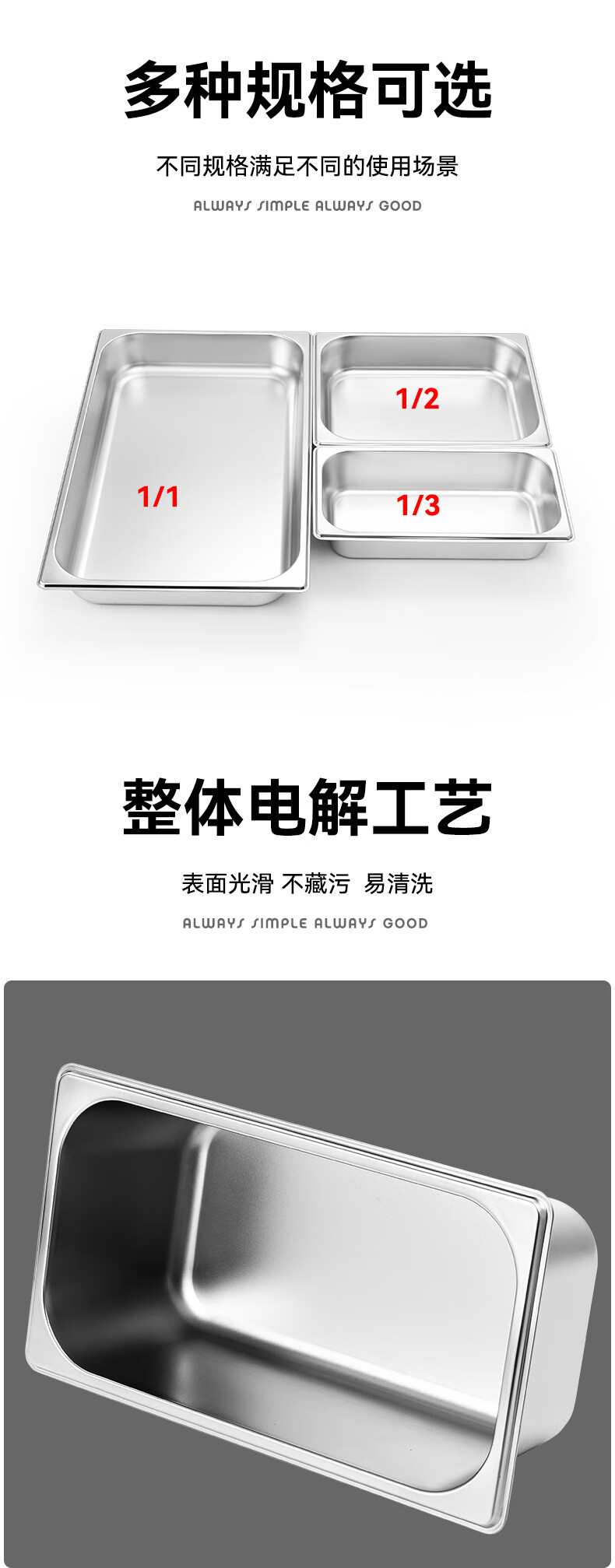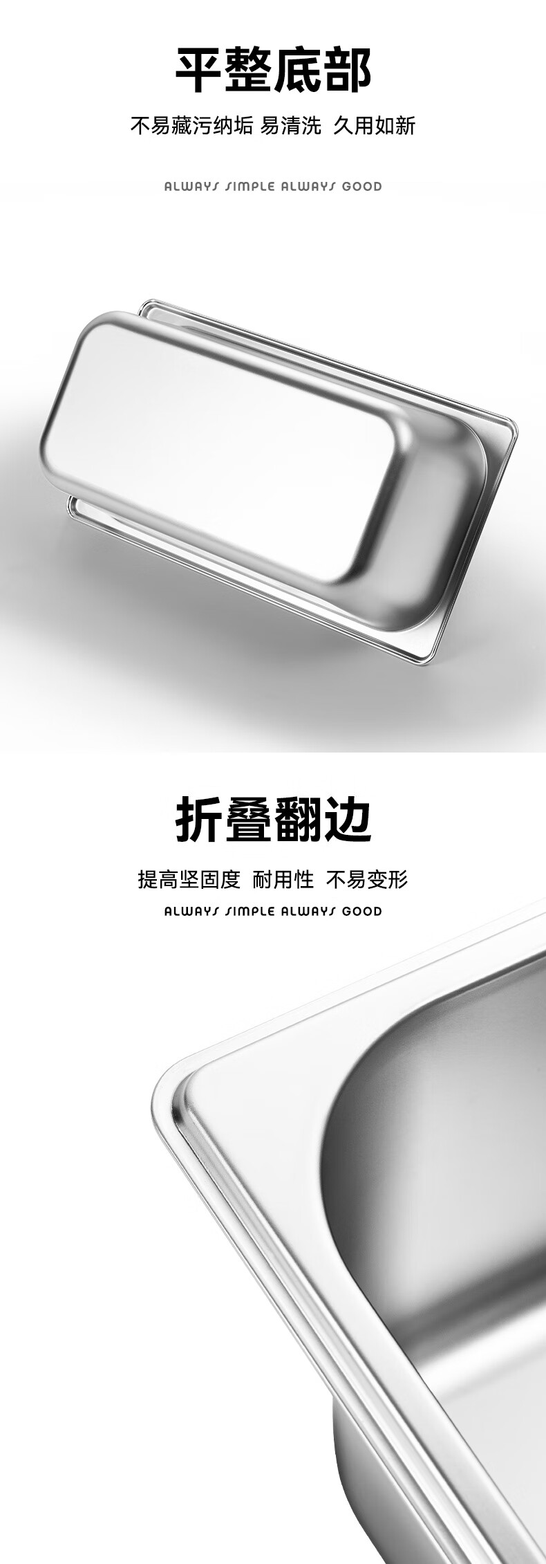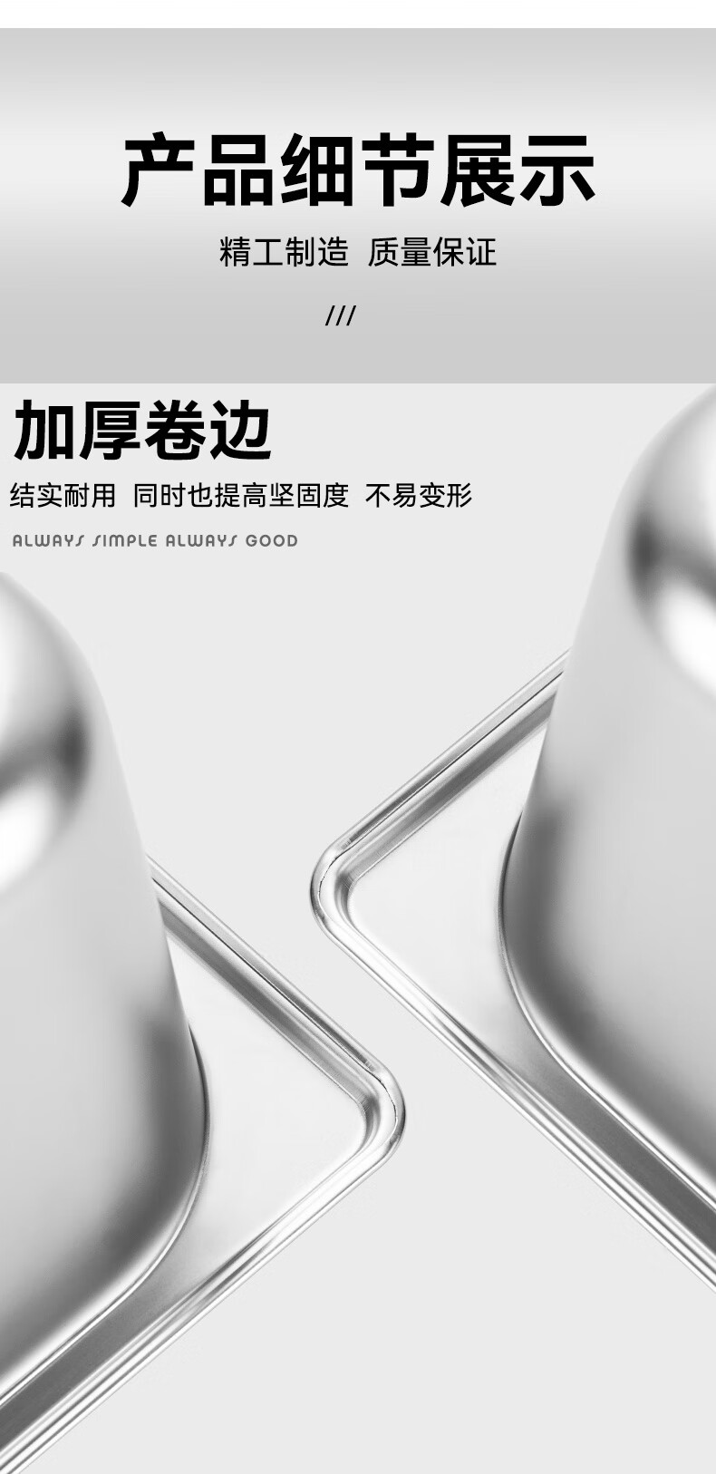 • 商品名称:金钥匙不锈钢份数盆1/3直身卷边自助餐商用食堂打菜盆10cmGK-MFS13-100 不锈钢份数盆/个