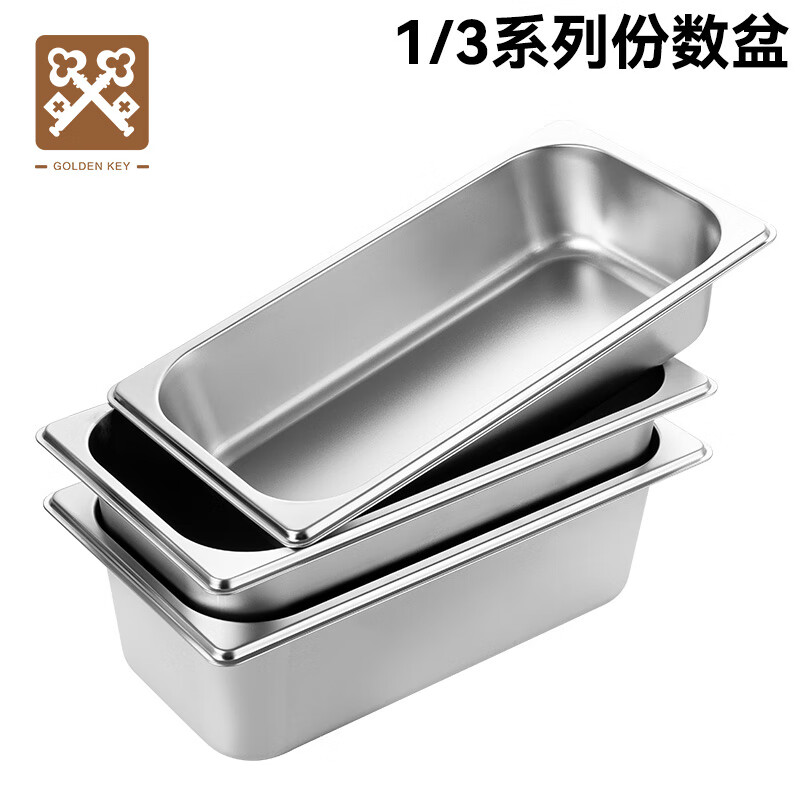金钥匙不锈钢份数盆1/3直身卷边自助餐商用食堂打菜盆10cmGK-MFS13-100 不锈钢份数盆/个