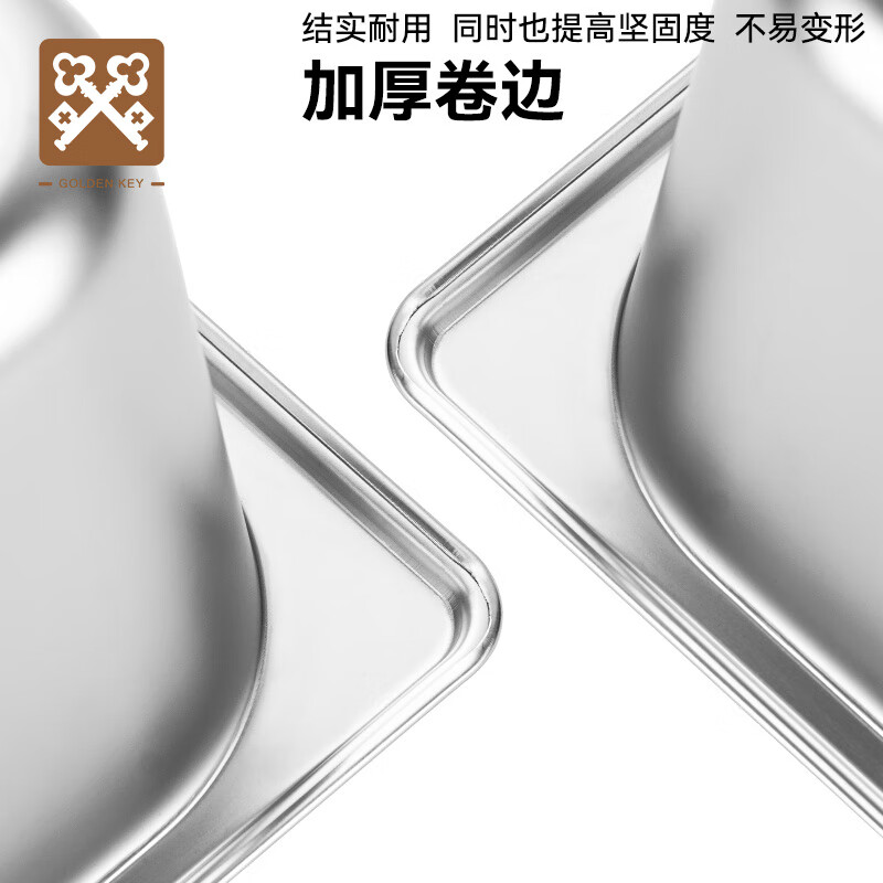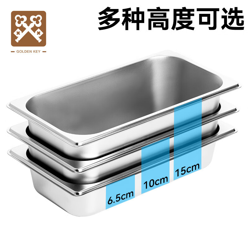 厨具  > 厨房储物  > 料理盆  >  金钥匙/GOLDEN KEY  >  金钥匙不锈钢份数盆1/3直身卷边自助餐商用食堂打菜盆10cmGK-MFS13-100 不锈钢份数盆/个