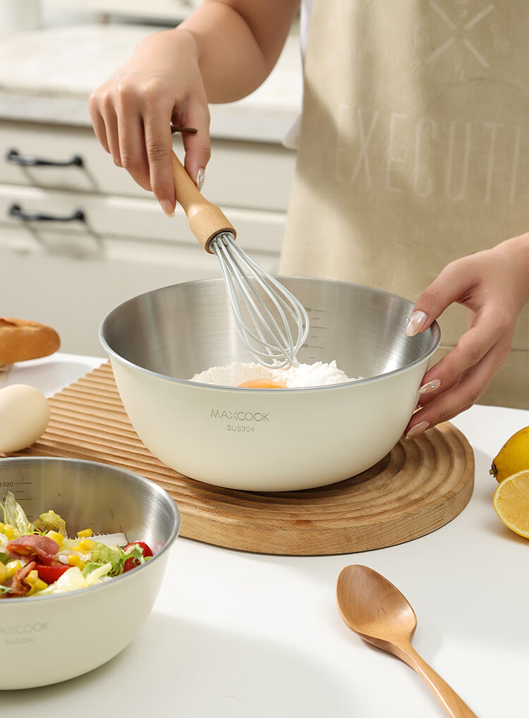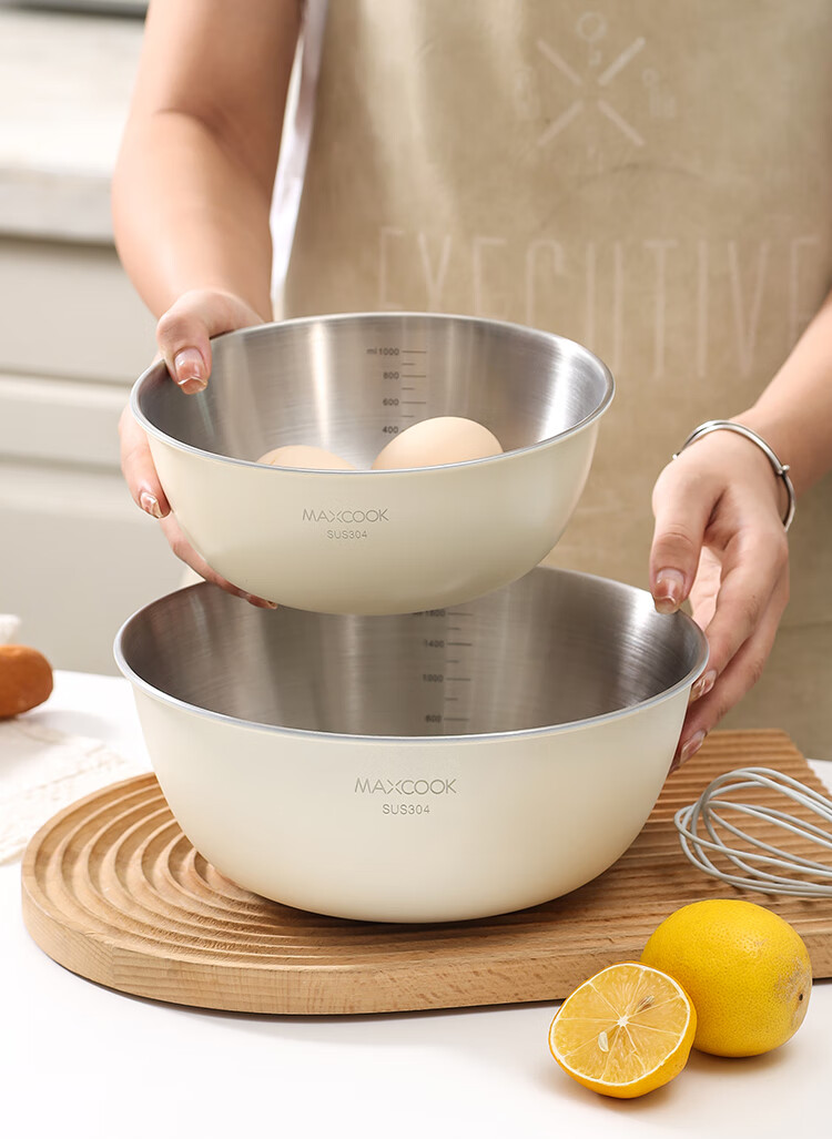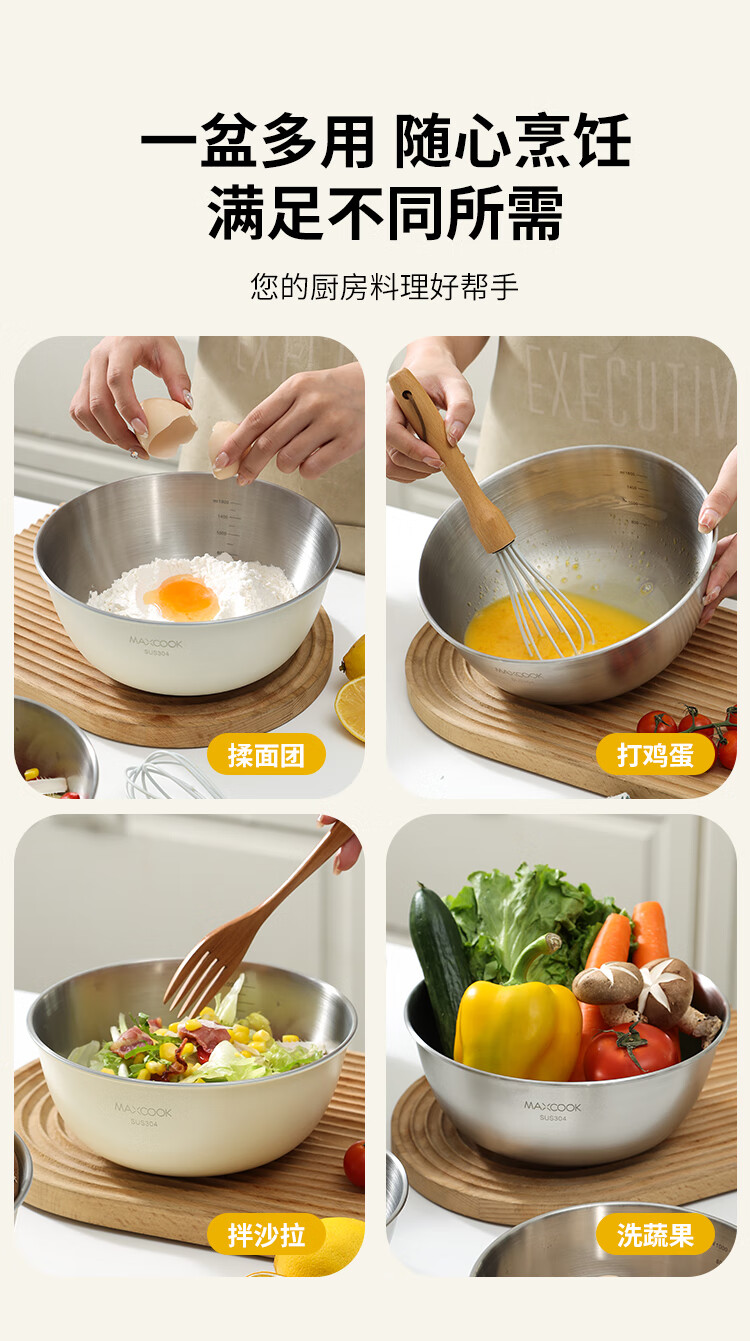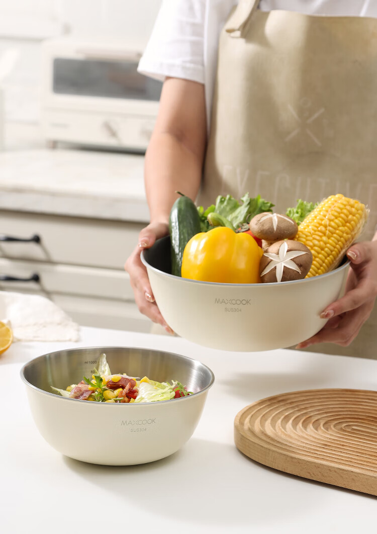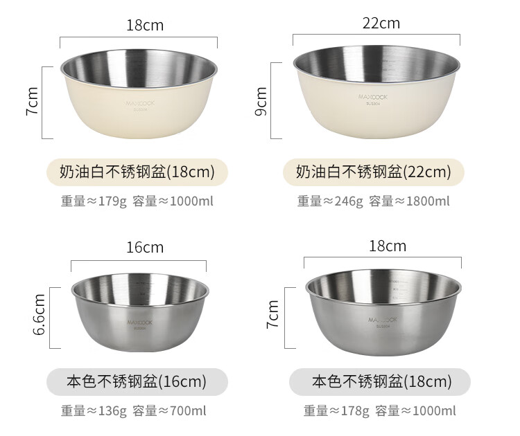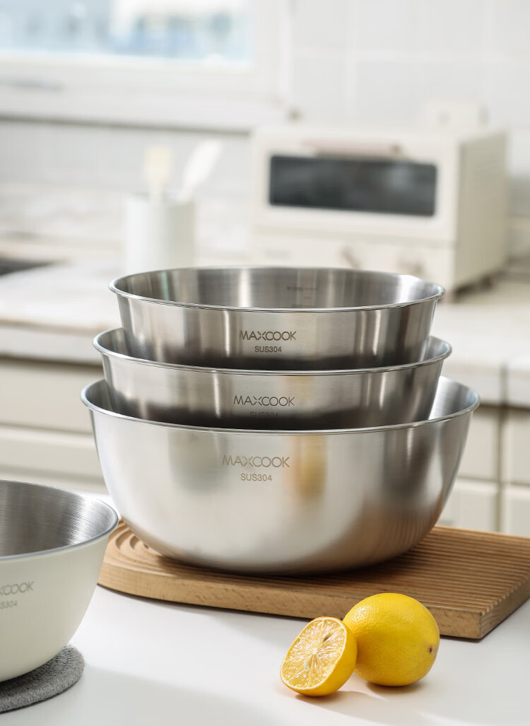 厨具  > 厨房储物  > 料理盆  >  美厨/maxcook  >  美厨(maxcook)304不锈钢盆沙拉盆加厚调料盆洗菜盆和面盆带刻度22cm 个MCWA6035 304不锈钢盆沙拉盆/个