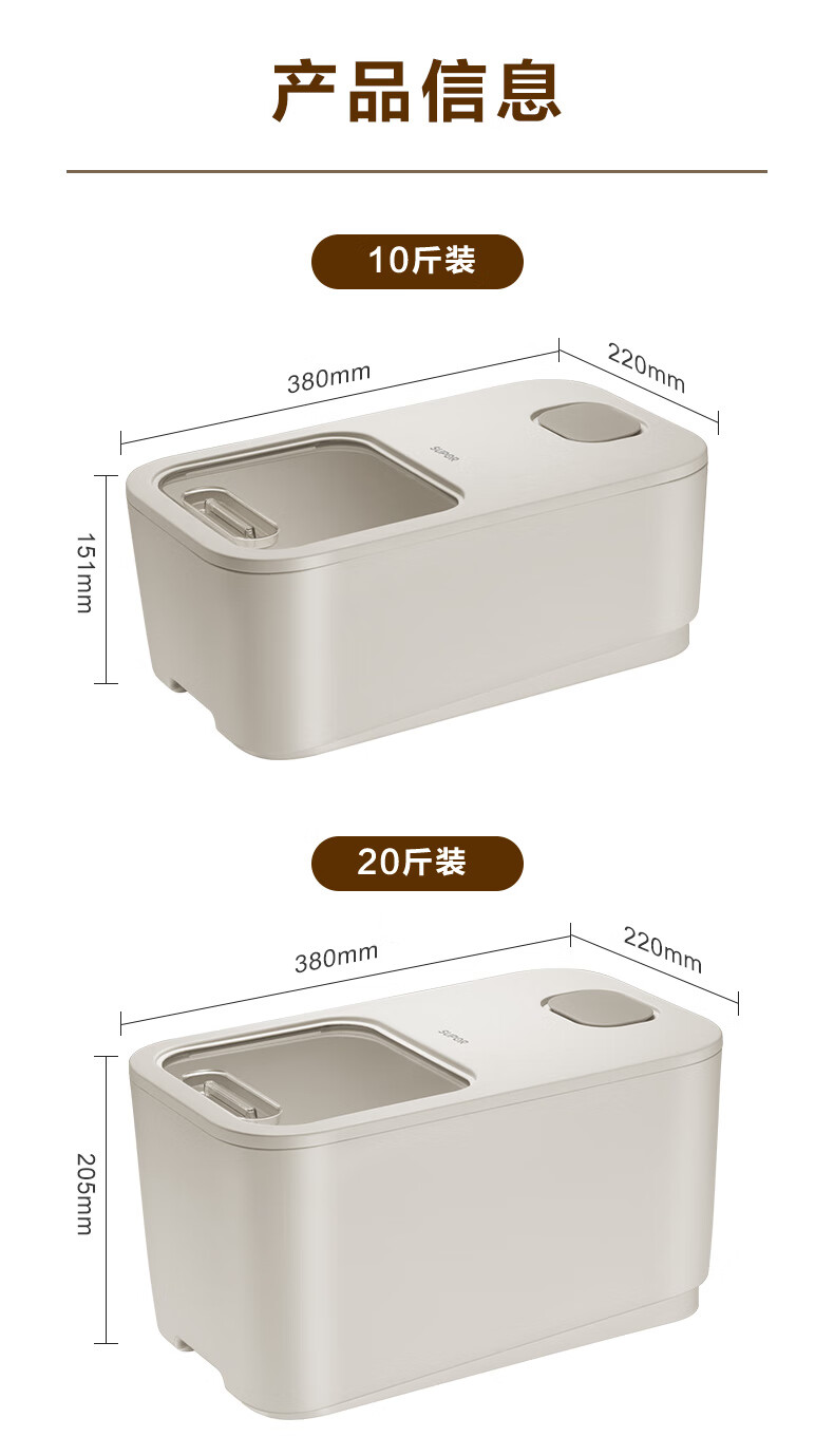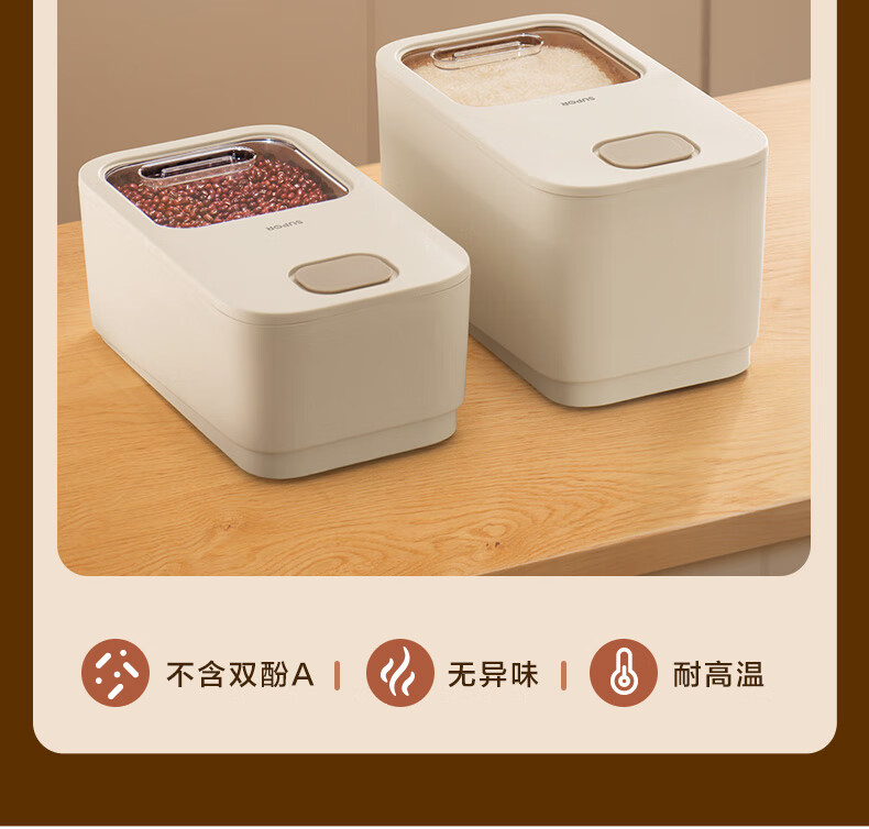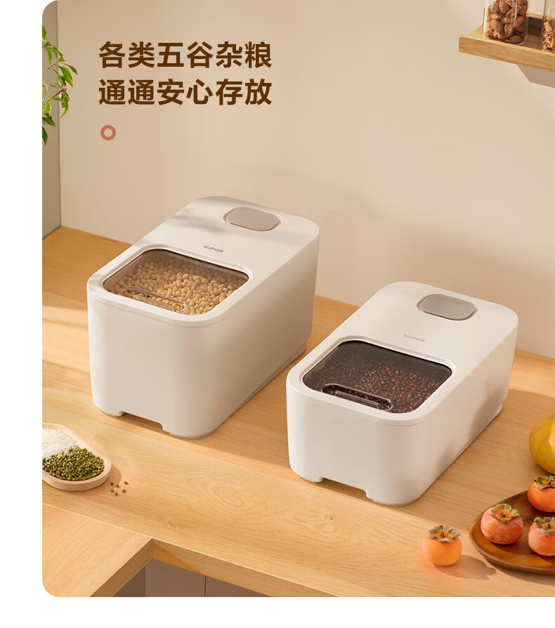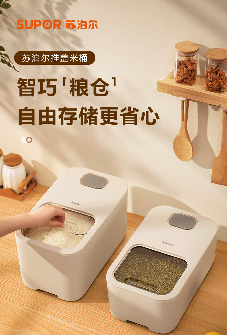 厨具  > 厨房储物  > 米桶/米缸  >  苏泊尔/SUPOR  >  苏泊尔SUPOR 推盖米桶食物储存防虫防潮大容量存储10斤 KG10AK10 厨房储物器皿/个