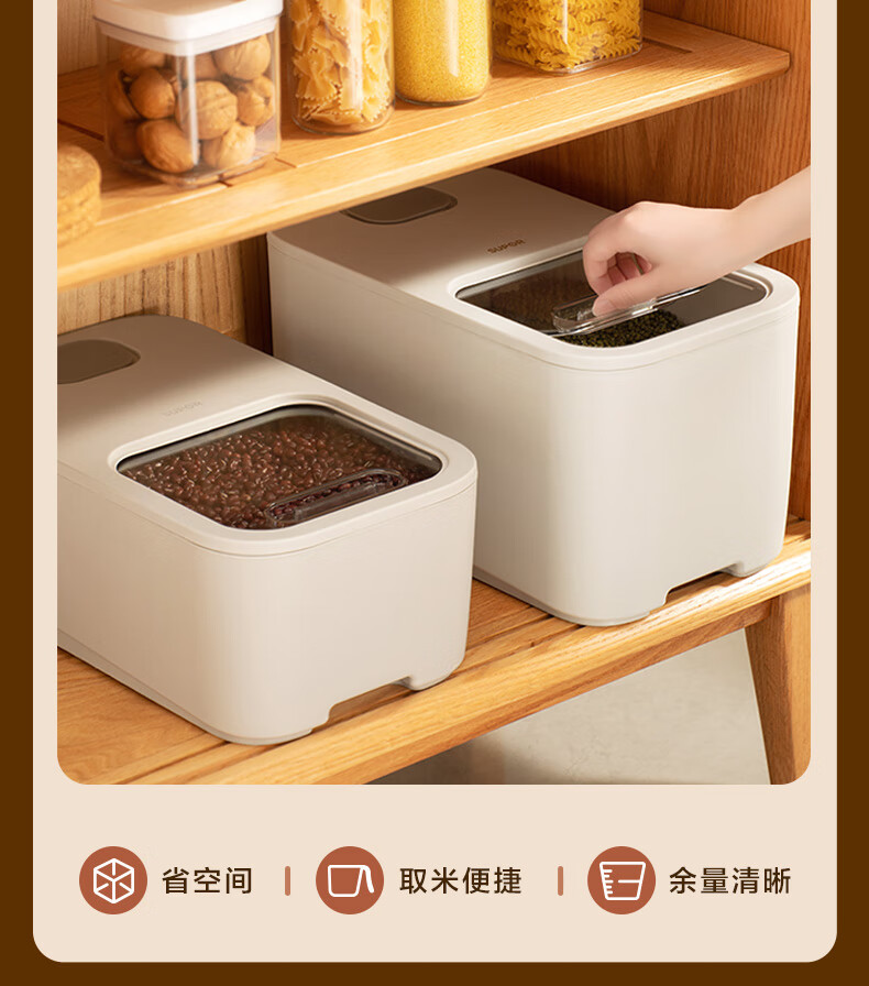 苏泊尔SUPOR 推盖米桶食物储存防虫防潮大容量存储10斤 KG10AK10 厨房储物器皿/个