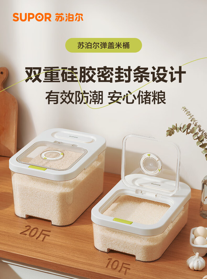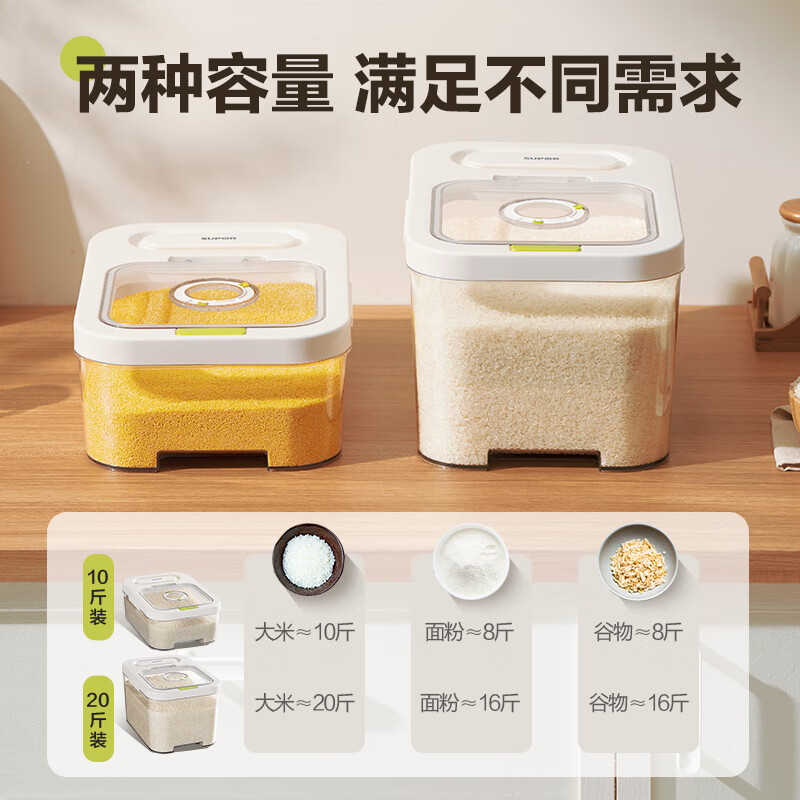苏泊尔SUPOR 弹盖米桶储存米缸防虫防潮大容量收纳盒10斤 KGF10BV10 厨房储物器皿/个
