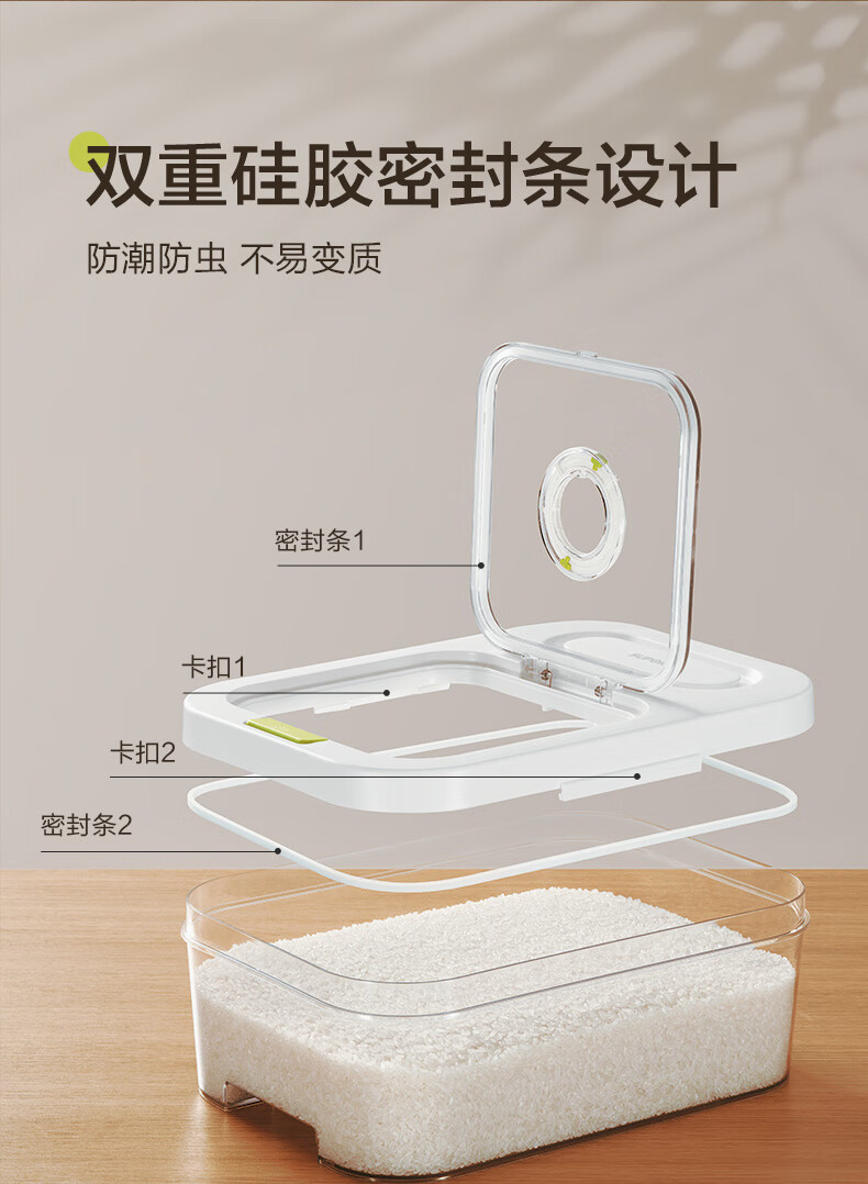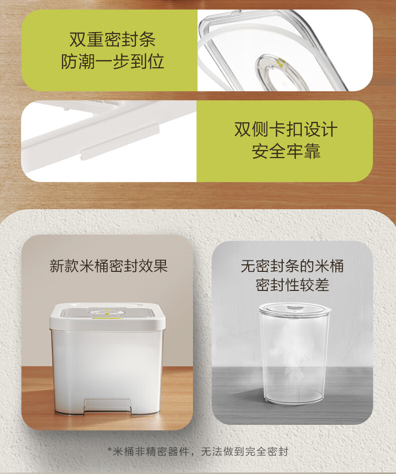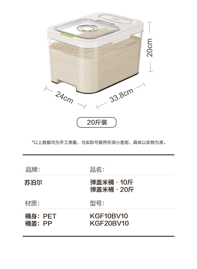 商品名称: 苏泊尔SUPOR 弹盖米桶储存米缸防虫防潮大容量收纳盒10斤 KGF10BV10 厨房储物器皿/个