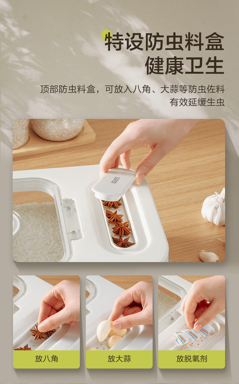 • 商品名称:苏泊尔SUPOR 弹盖米桶储存米缸防虫防潮大容量收纳盒10斤 KGF10BV10 厨房储物器皿/个