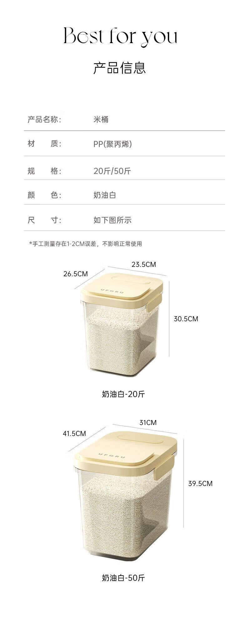 商品名称: 求巧米桶家用50斤装防虫防潮密封米箱储存罐食品级面粉米缸大米收 米桶【50斤+米杯】/个