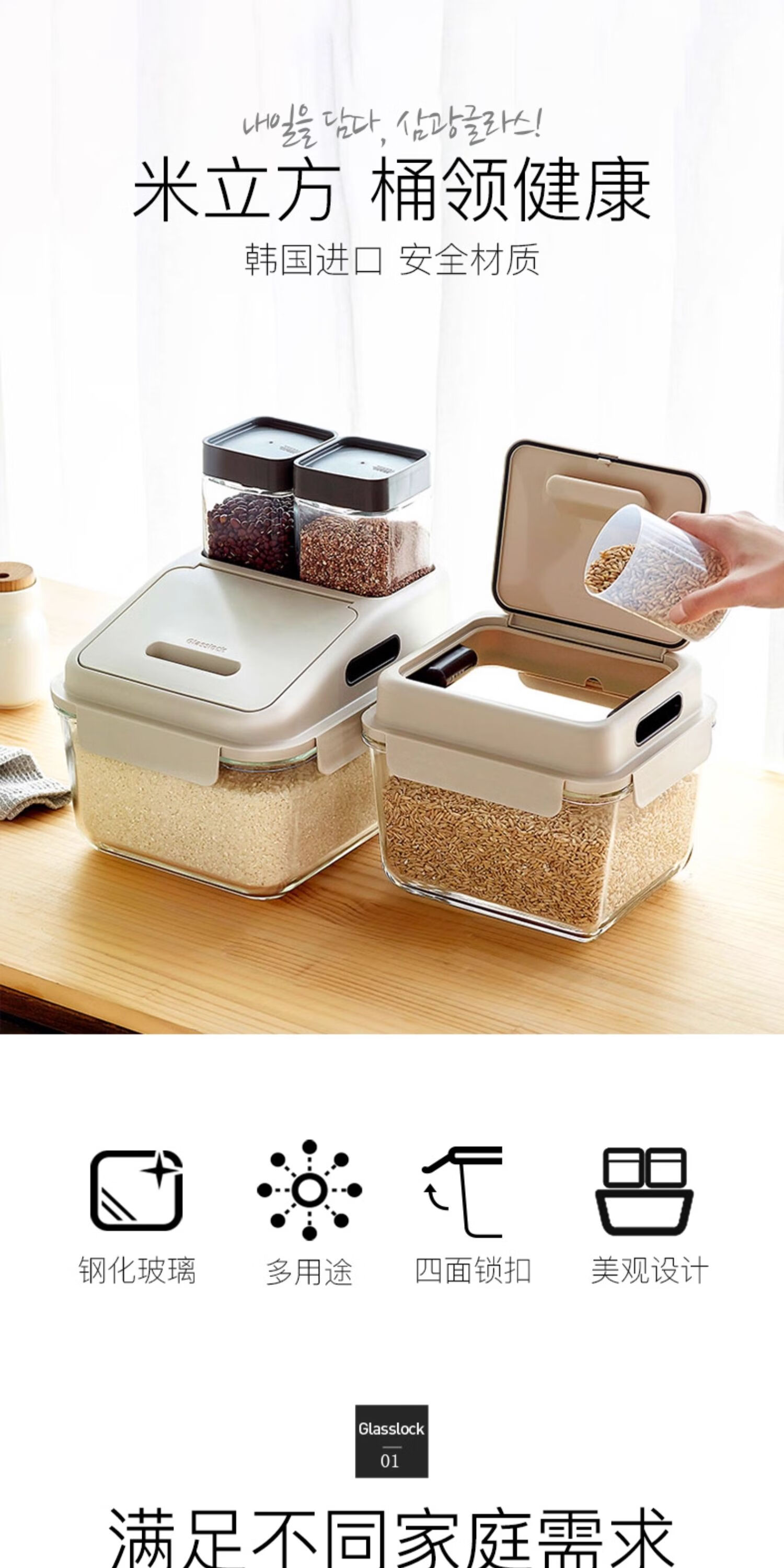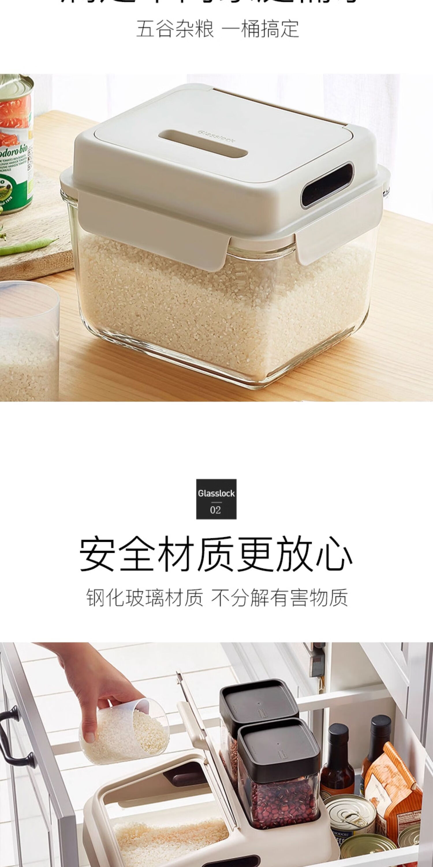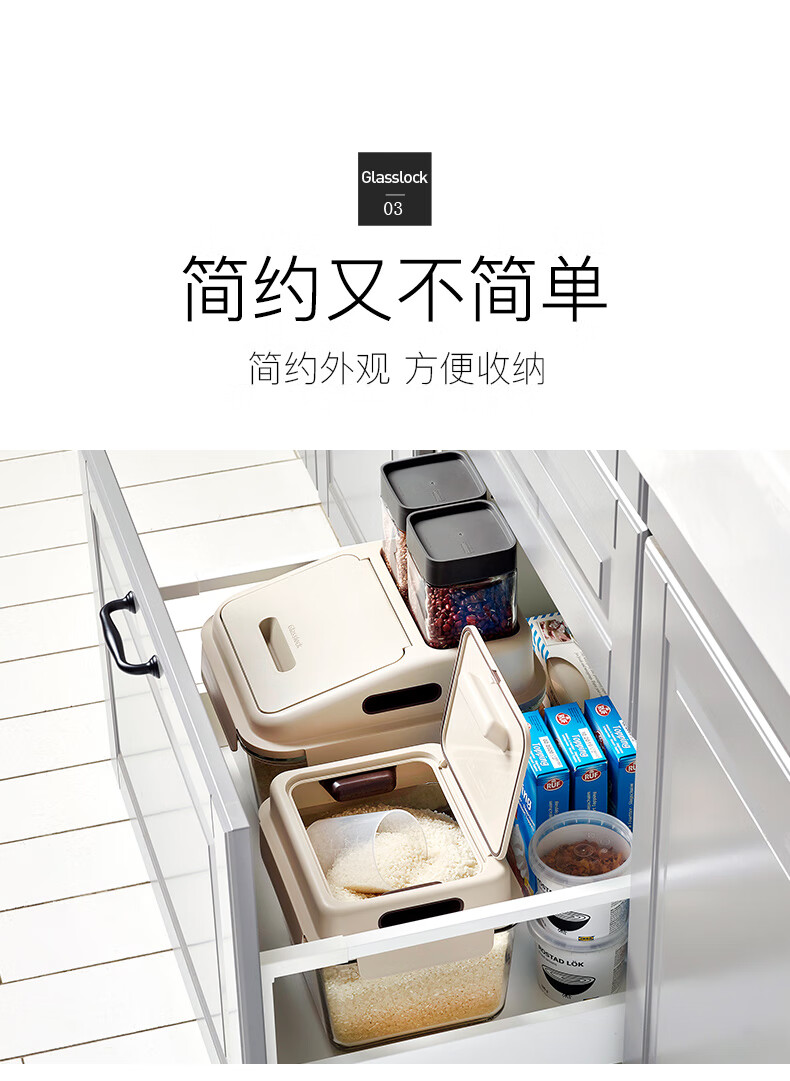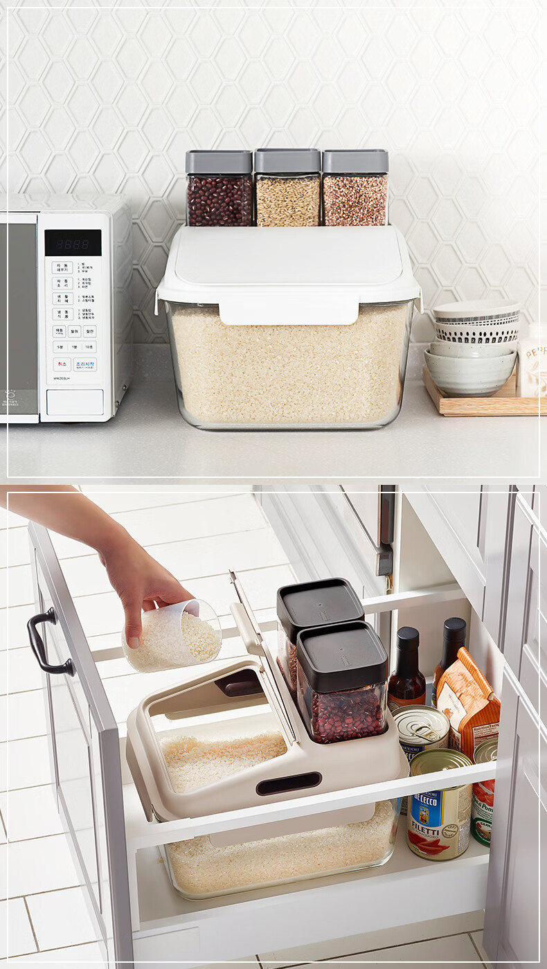 厨具  > 厨房储物  > 米桶/米缸  >  GLASSLOCK  >  GLASSLOCK米桶防虫储米箱厨房密封加厚进口玻璃杂粮收纳桶大容量防潮面桶6L MCRB-600RS/个