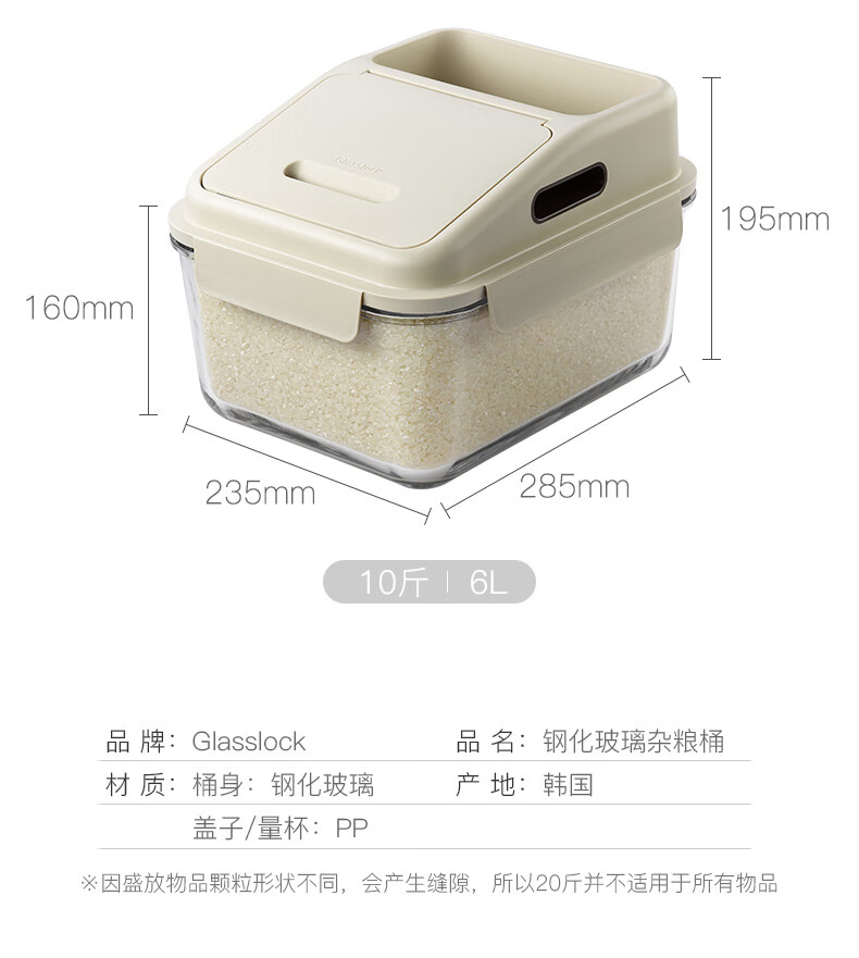 • 商品名称:GLASSLOCK米桶防虫储米箱厨房密封加厚进口玻璃杂粮收纳桶大容量防潮面桶6L MCRB-600RS/个