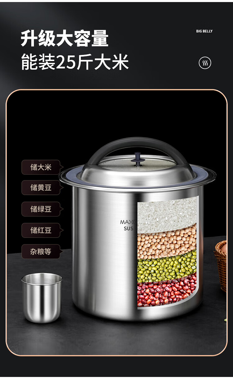 • 商品名称:美厨(maxcook)米桶米箱储存罐 304不锈钢杂粮密封储物桶装米米缸10KG MCX5264 304不锈钢密封米桶储物桶/个