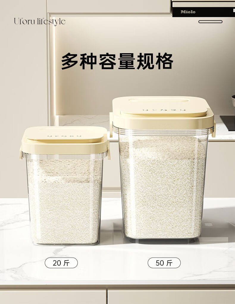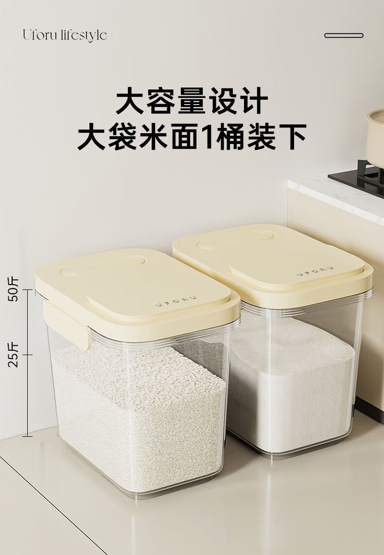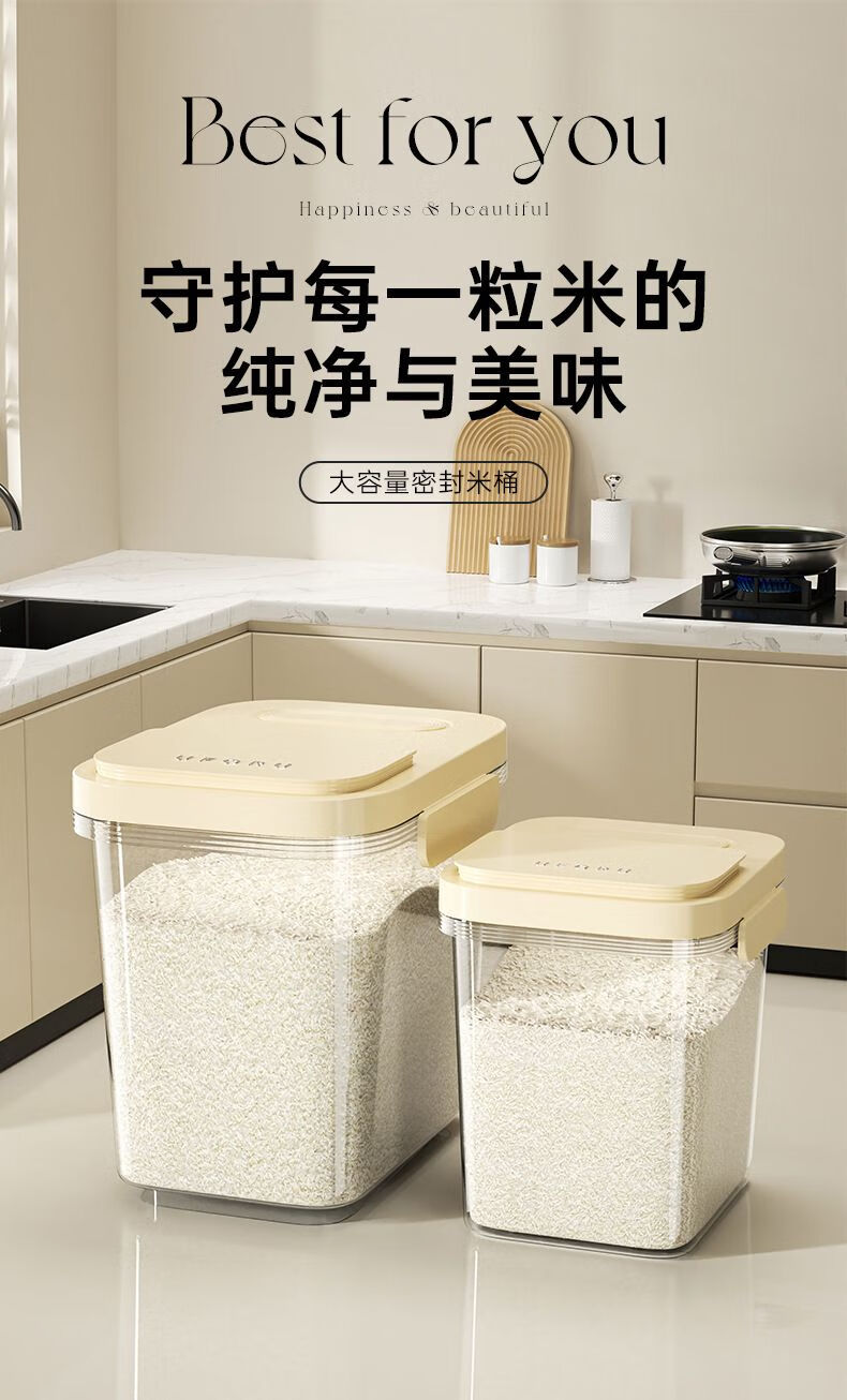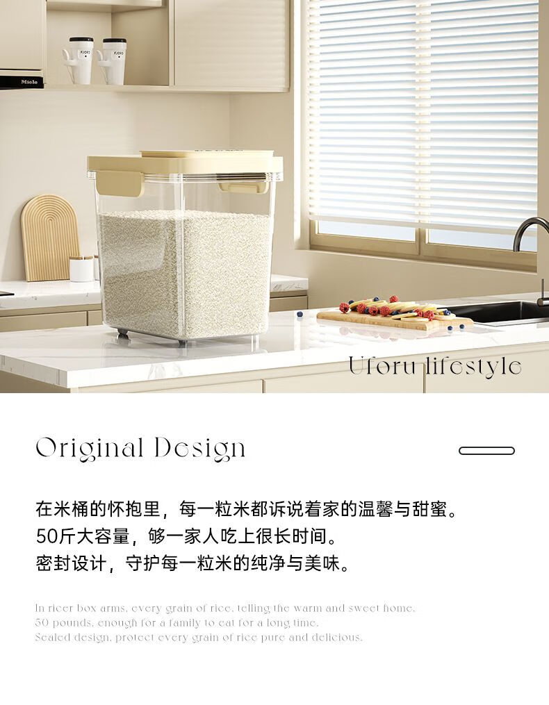 厨具  > 厨房储物  > 米桶/米缸  >  尼尔欣  >  尼尔欣米桶家用50斤装防虫防潮密封米箱储存罐食品级面粉米缸大米 50斤大号-奶油白(带轮子)/个