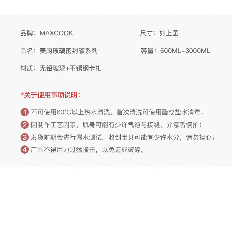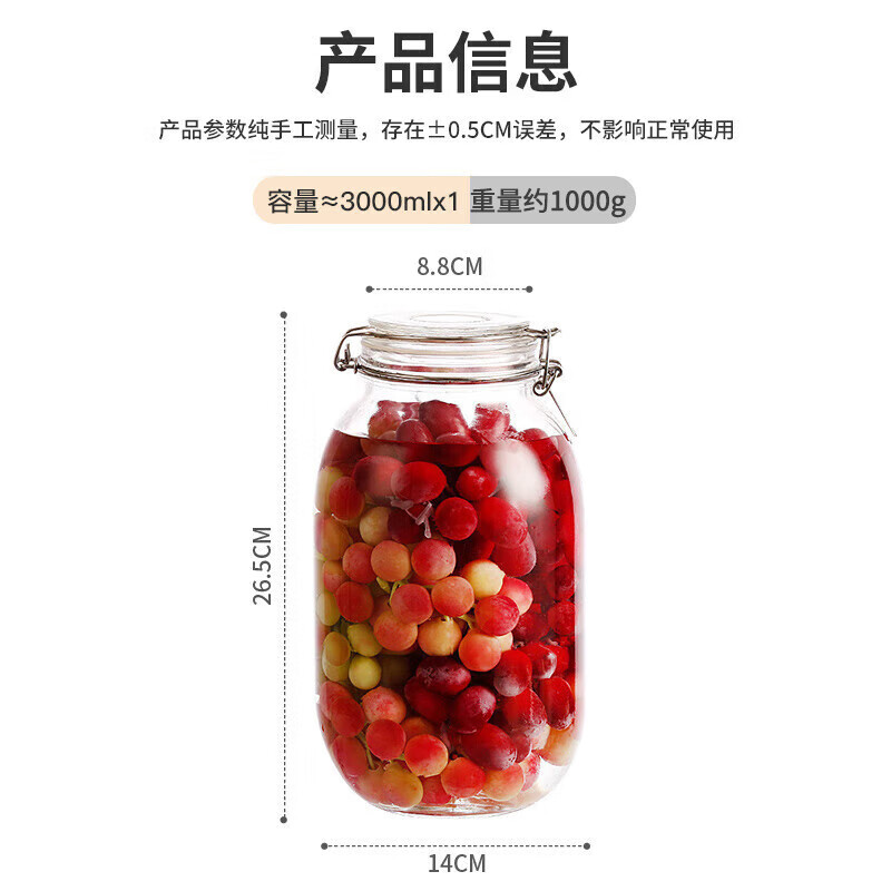 商品名称: 美厨(maxcook)玻璃密封罐 储物瓶泡酒瓶玻璃瓶子泡腊八蒜 3000ml 单个装MCX1046 玻璃密封罐/个